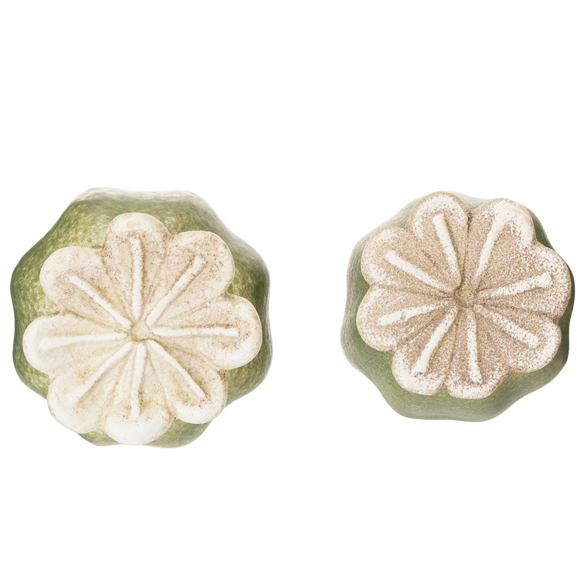 - Set bestaande uit 2 tuinpalen in de vorm van een klaprooszaadcapsule.