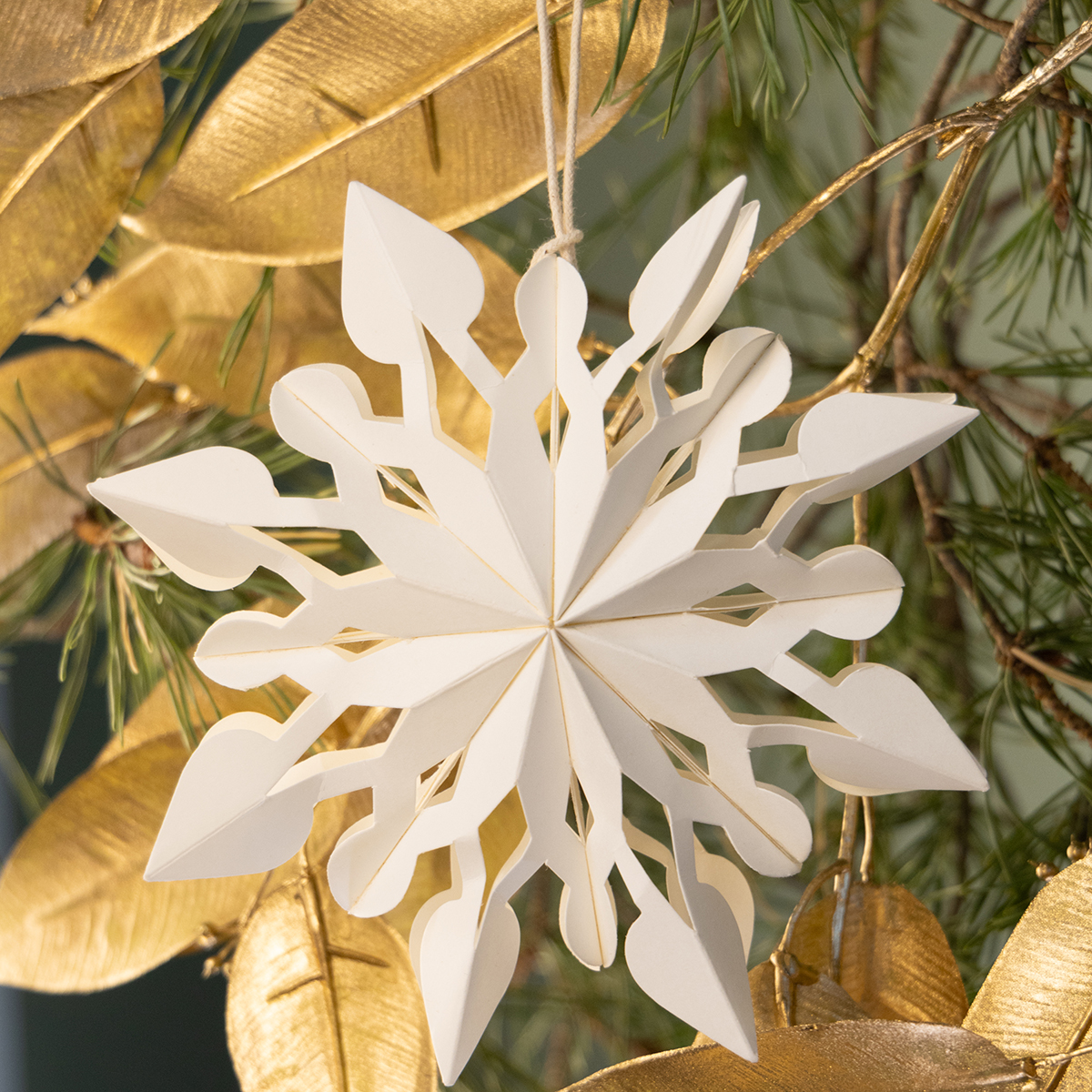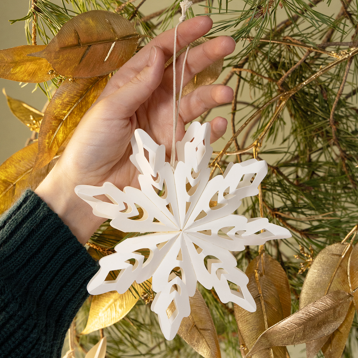 À l'approche de Noël, place aux décorations ! Et quoi de plus féérique que de délicats flocons de neige en papier scintillant sur les arbres, les fenêtres ou les branches de sapin ? Ces flocons blancs allient la légèreté hivernale au charme scandinave épuré. Le choix idéal pour apporter une touche de nature et d'élégance à votre intérieur ! À la fenêtre, en guise de décorations pour le sapin ou au-dessus de la table de fête, ces flocons délicats créent une atmosphère enchanteresse.