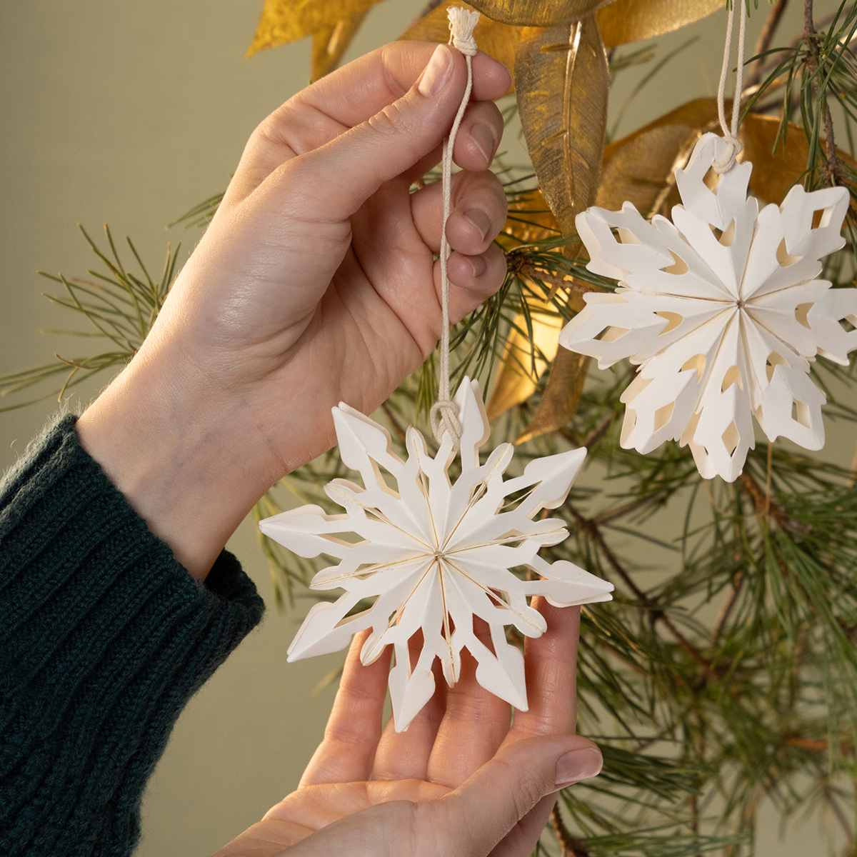 Vous cherchez peut-être justement ce genre de décoration de Noël ? Quelque chose de simple et pourtant plein de sens ? Ces délicates décorations en papier blanc, en forme de flocons de neige, séduisent par leur légèreté et créent une ambiance hivernale féérique. Qu'il neige ou non, ces flocons de neige sublimeront votre décoration d'hiver.