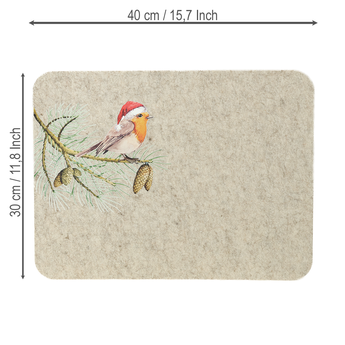 Filzmatten Rotkehlchen Motiv für stimmungsvolle weihnachtliche Tischdeko