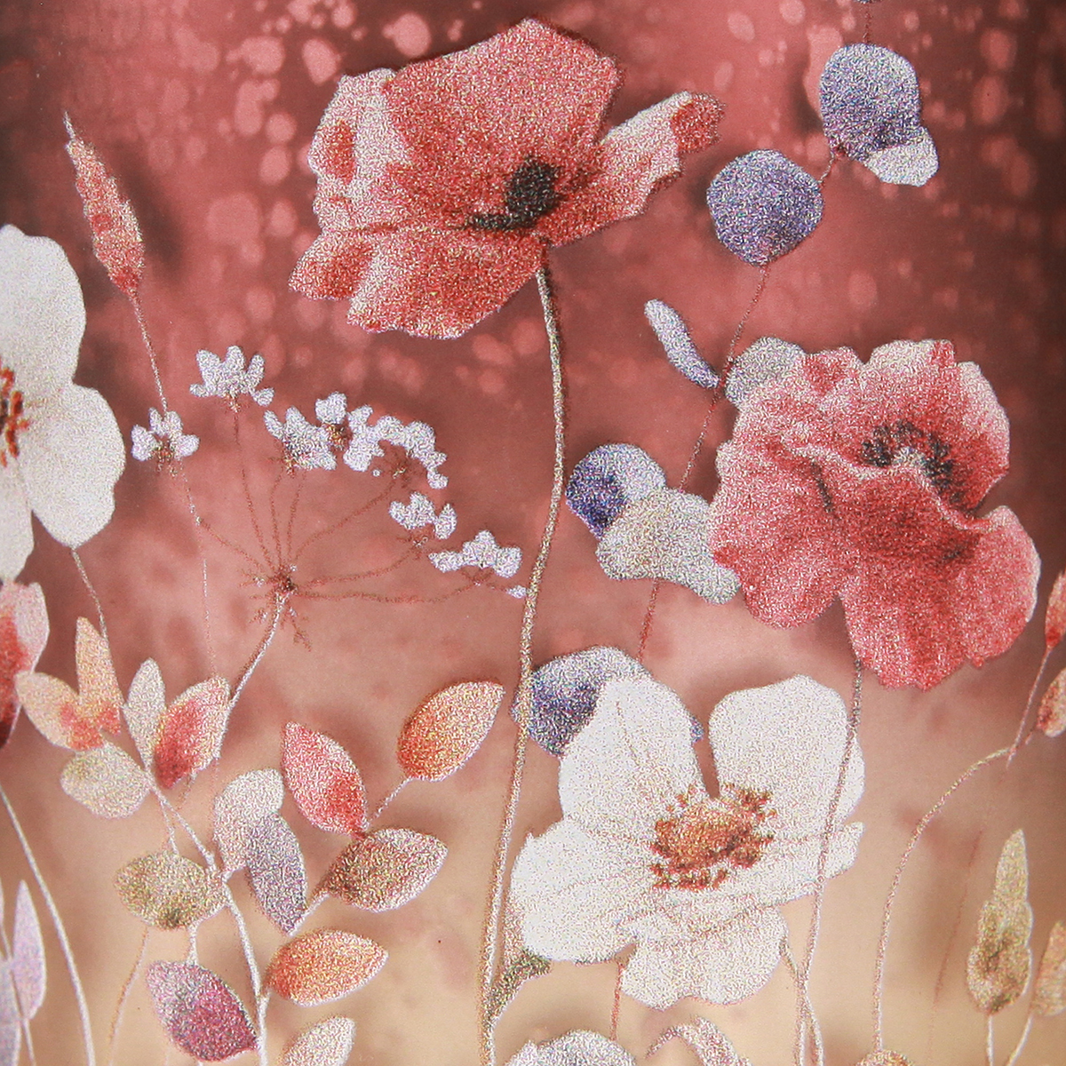 Notre élégant bougeoir séduit par son esthétique et sa polyvalence. Le verre de haute qualité lui confère une grande stabilité et crée un agréable jeu de lumière qui met délicatement en valeur ses motifs floraux. Son design rouge et multicolore finement travaillé, orné de motifs floraux, est idéal pour les compositions florales, les installations décoratives modernes, ou même comme objet décoratif à poser sur le rebord de votre fenêtre. Ses dimensions compactes (7,5 cm de diamètre, 8 cm de hauteur) le rendent parfait pour les petites pièces ou les tables – idéal pour ajouter une touche d'élégance !