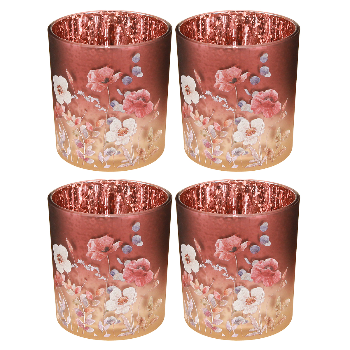 Elegante kaarsenhouder met bloemmotieven voor een sfeervolle kamerinrichting, 8 cm, 4 stuks.