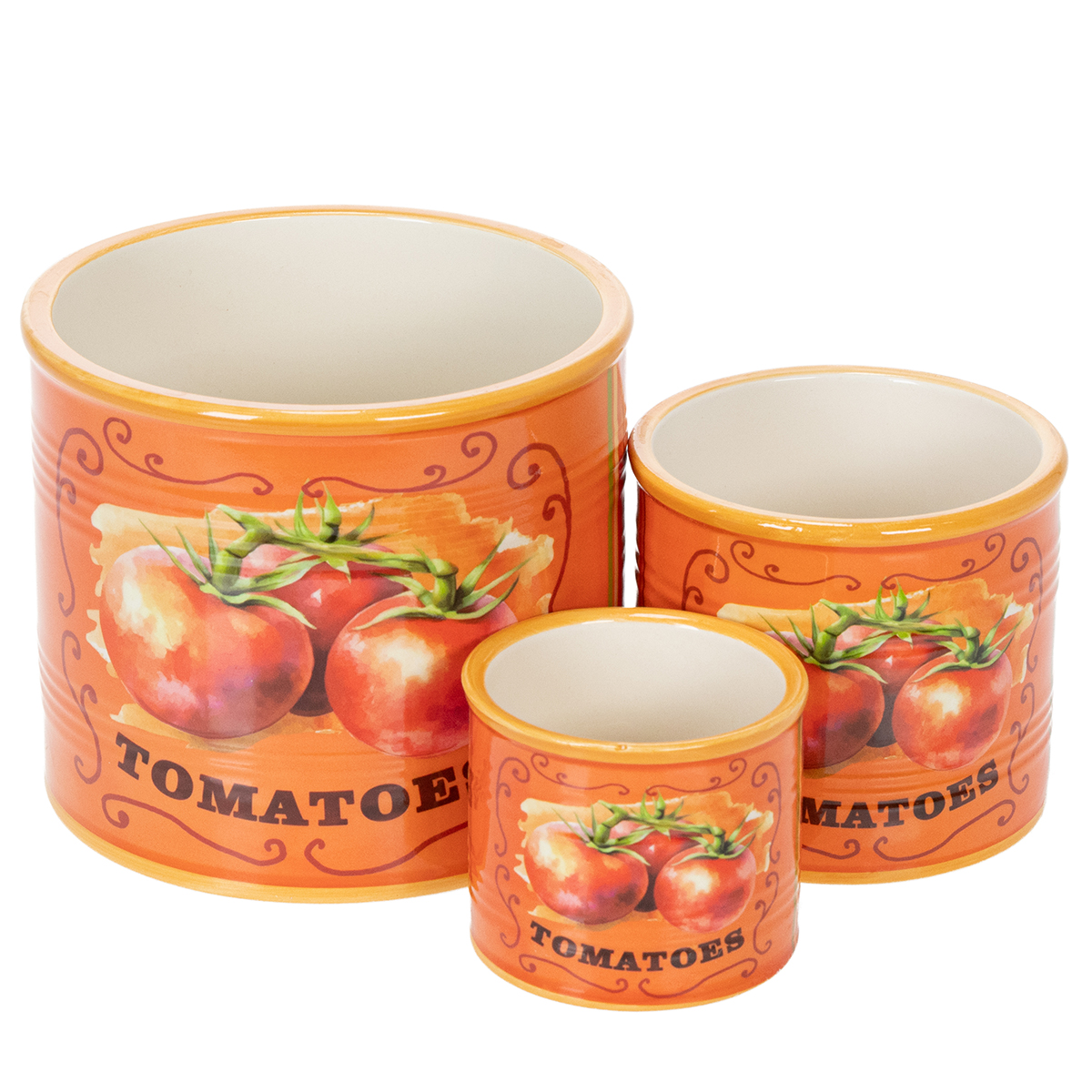 Nom du produit : Ensemble de 3 pots à tomates décoratifs en céramique pour la cuisine et un style rétro, 14 cm.