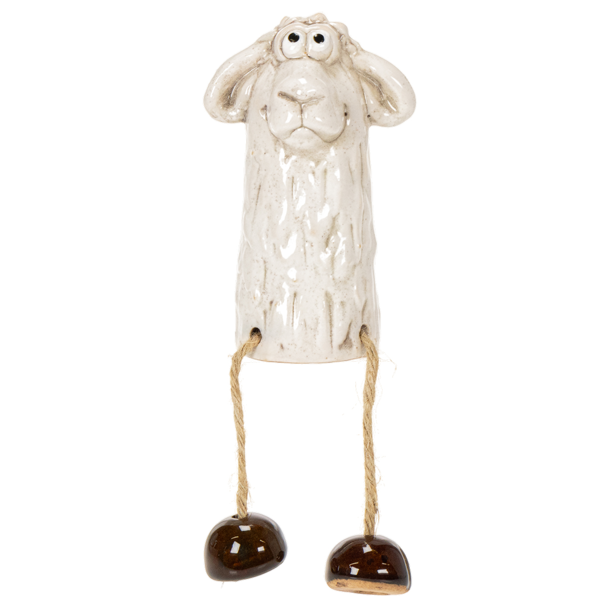 Suchen Sie nach einer dekorativen Kleinigkeit, die Charme und Gemütlichkeit in Ihre Räume bringt? Dann ist dieses Schaf als Dekofigur aus Keramik genau das Richtige! Mit ihrer niedlichen, sitzenden Haltung und der liebevollen Gestaltung sorgt sie nicht nur zu Ostern, sondern das ganze Jahr über für einen besonderen Hingucker. Ob auf dem Tisch arrangiert, am Fensterbrett platziert oder sogar als Highlight auf Ihrem Balkon – diese Figur zieht garantiert alle Blicke auf sich. Der warme Weißton, kombiniert mit den hängenden Kordelbeinen und den braunen Füßen, verleiht der Keramikfigur eine verspielte, dennoch zeitlose Ausstrahlung. Perfekt für den Landhausstil oder skandinavische Wohnkonzepte. Lust auf eine zauberhafte Kombination? Probieren Sie es doch mit Naturmaterialien wie Holz oder Moos als Untergrund aus. Lassen Sie Ihrer Kreativität freien Lauf!