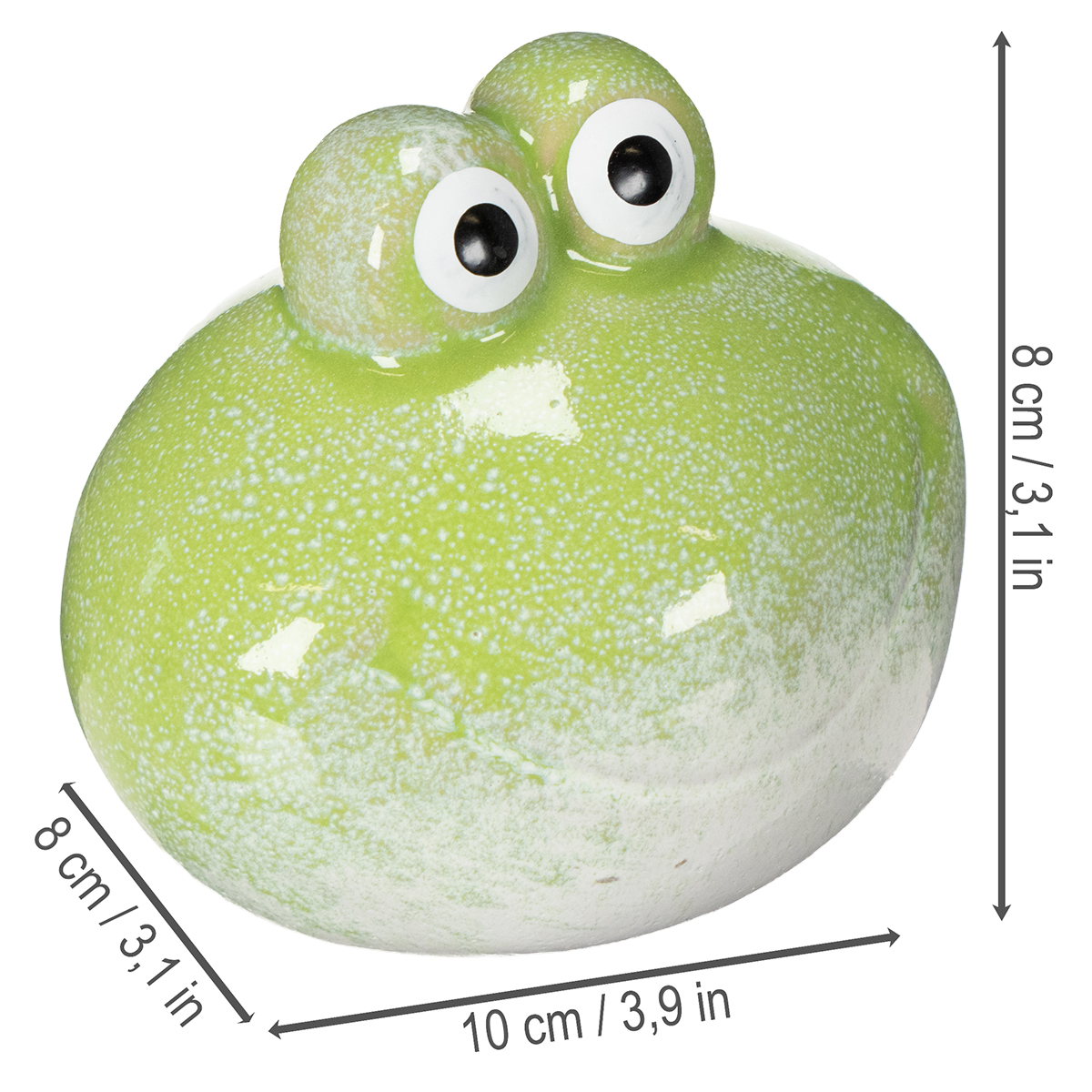 Wünschen Sie sich eine dekorative Kleinigkeit, die Ihr Wohnzimmer fröhlicher wirken lässt? Oder suchen Sie nach einem liebevollen Akzent für Schreibtisch, Fensterbank oder Regal? Diese niedlichen Froschfiguren aus hochwertiger Keramik sind die ideale Wahl! Mit ihrer frischen grünen Farbe und handlichen Größe bringen sie sofort gute Laune und einen Hauch von Natur in Ihre vier Wände. Die charmant gestalteten Augenpaare verleihen den Fröschen einen lebhaften Ausdruck, der jedes Ambiente auflockert.