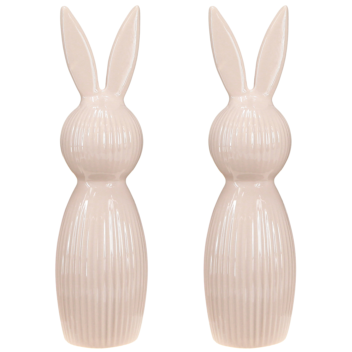 Een decoratief object dat stijl en charme combineert: dit keramische konijn is 22 cm hoog en betovert met zijn slanke silhouet en delicate roze tint. De fijne, verticale groeven geven het een chique textuur en voegen een speels accent toe aan het ontwerp. Met een diameter van 7 cm is het ruimtebesparend en past het perfect, zelfs op smalle vensterbanken of planken. Het hoogwaardige keramische materiaal imponeert met zijn stevigheid en duurzaamheid – ideaal om er altijd op zijn best uit te zien, zelfs in drukbezochte ruimtes zoals de woonkamer of eetkamer.