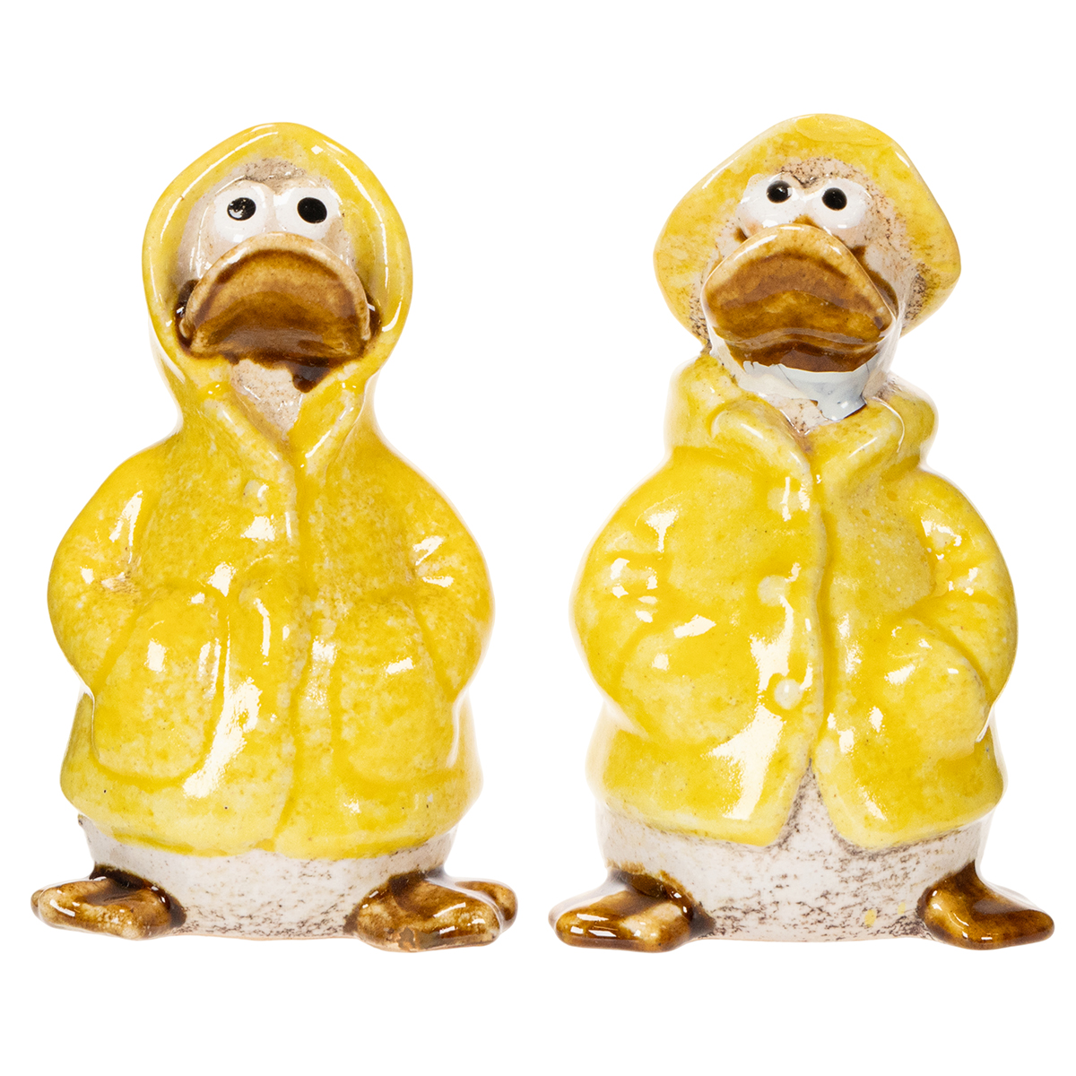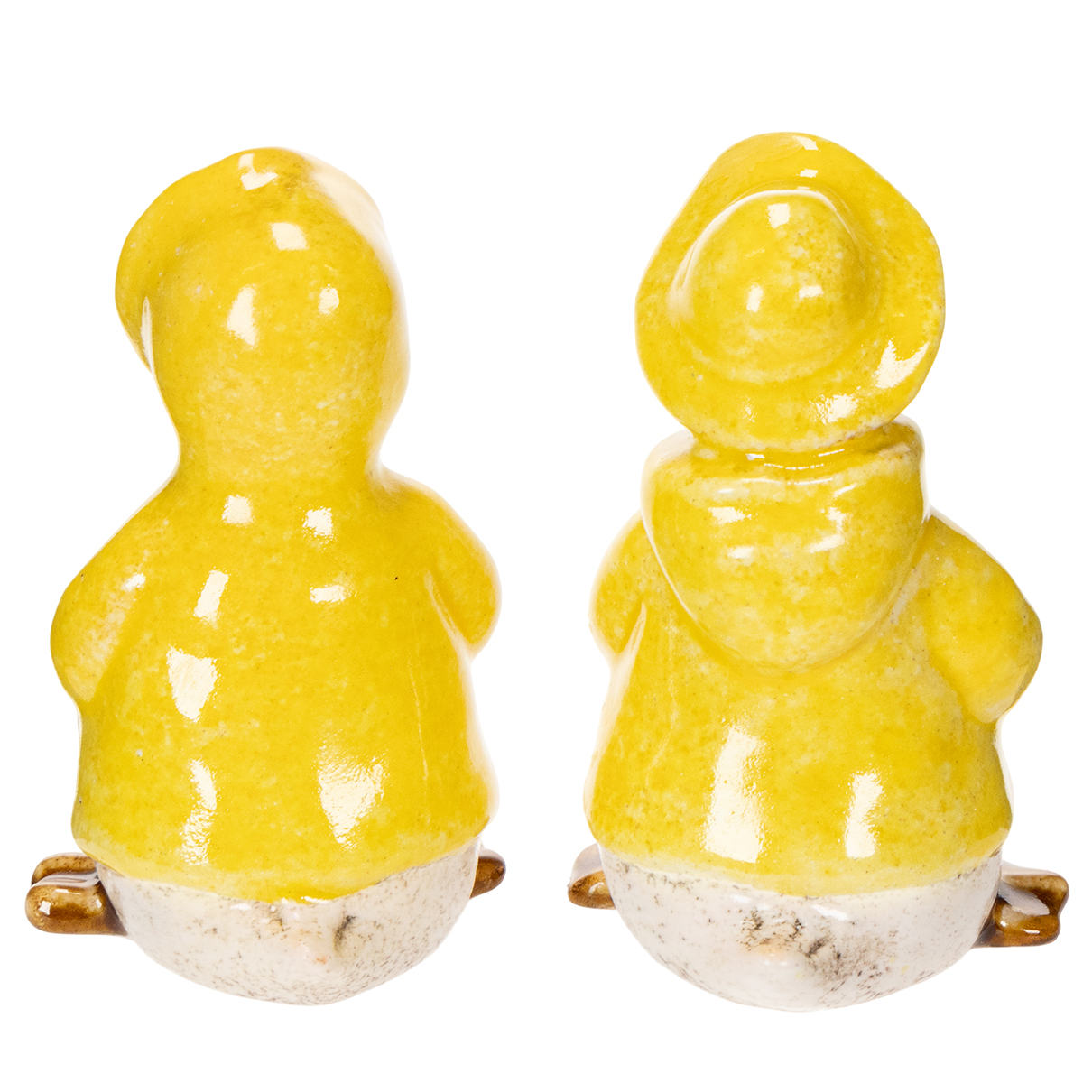 Figurines de canards en céramique vêtus d'imperméables jaunes – décorations amusantes pour le printemps et l'été