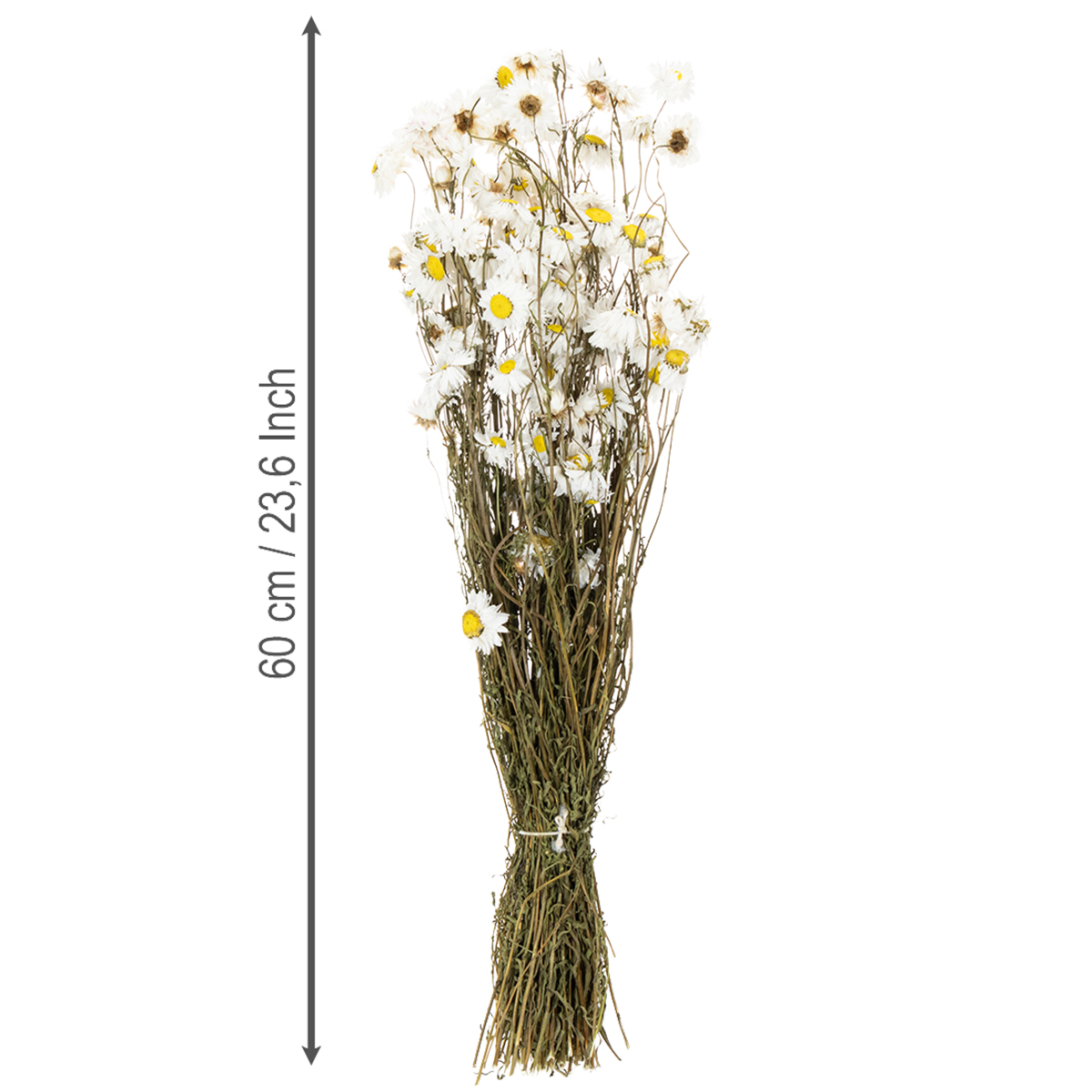 Gedroogde Acroclinium-bloemen, witte bloesem, gedroogd bloemstuk, 60 cm, 80 g