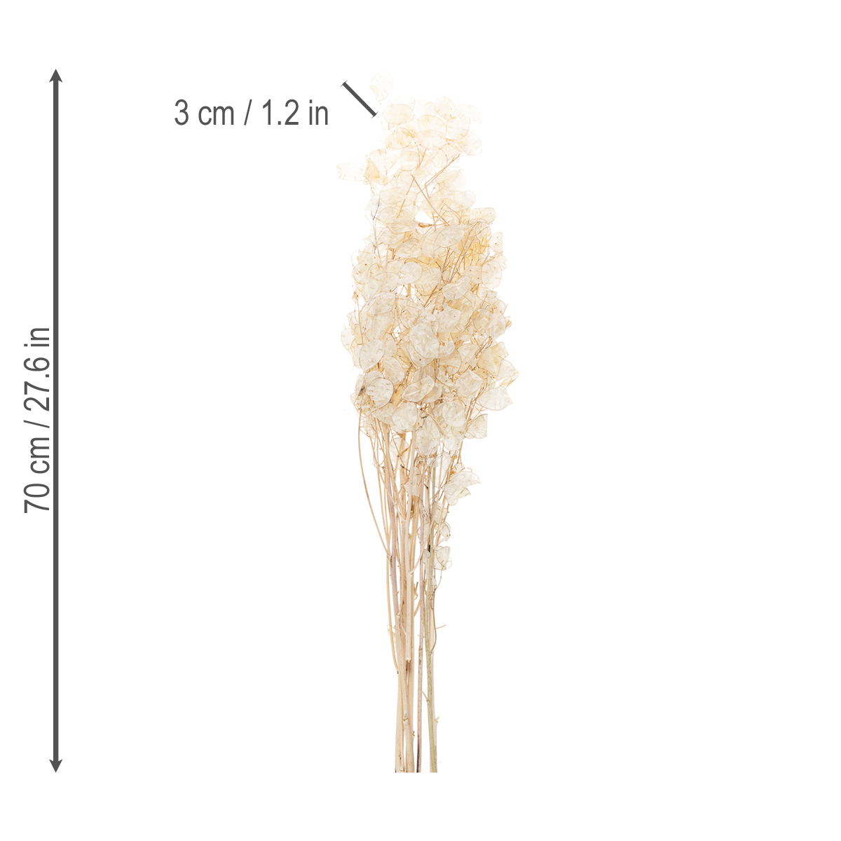 L'ambiance de votre décoration avec le Lunaria Silberling passe du traditionnel nostalgique au glamour en passant par le complètement moderne. Dans tous les cas, votre décoration prendra une touche féerique avec la feuille d'argent en fleur séchée !