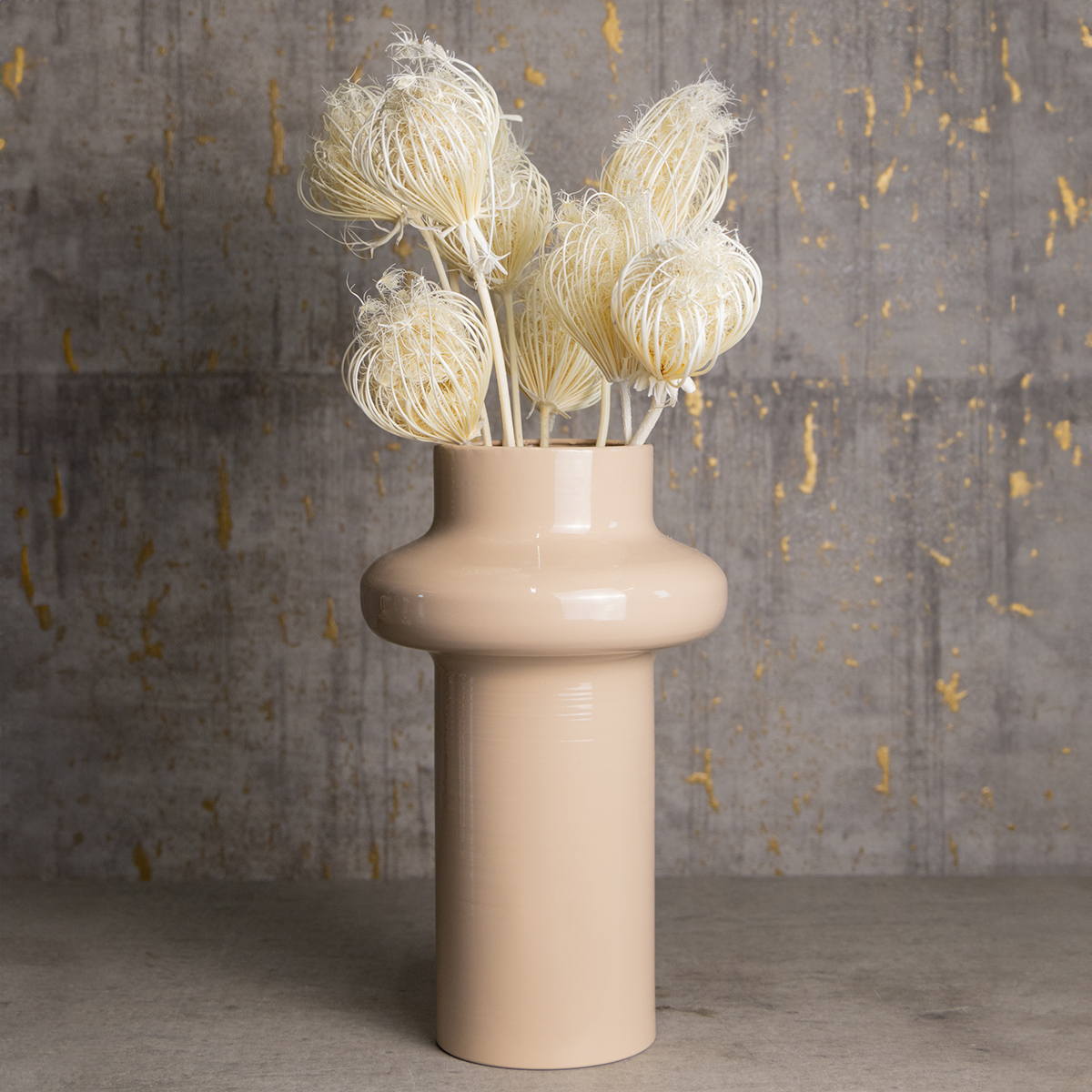 Gedroogde bloemen zoals dit boeket venkel brengen altijd nieuwe nuances in elke kamerinrichting. De delicate zaadhoofdjes werden zorgvuldig bewaard en gedroogd voor dit droogboeket. De lichte kleur van de gedroogde en gebleekte stengelbloemen is bijzonder mooi. De verschillend grote, naar binnen gebogen hoofdjes van de venkelstengels creëren een weelderig maar sierlijk effect.Als gedroogde decoratie kunnen de venkeltakken prachtig in een hoge vaas worden geplaatst. Glas accentueert elk detail van de gedroogde plant, terwijl een landelijke vaas gedroogde boeketten in een rustieke stijl omlijst. Naarmate de trend voor droogbloemen en gedroogd gras zich verder ontwikkelt, vindt u in onze winkel ook een ruime keuze aan spannende droogbloemen, waarmee u individuele droogkransen of natuurlijke arrangementen kunt creëren voor alle gelegenheden.