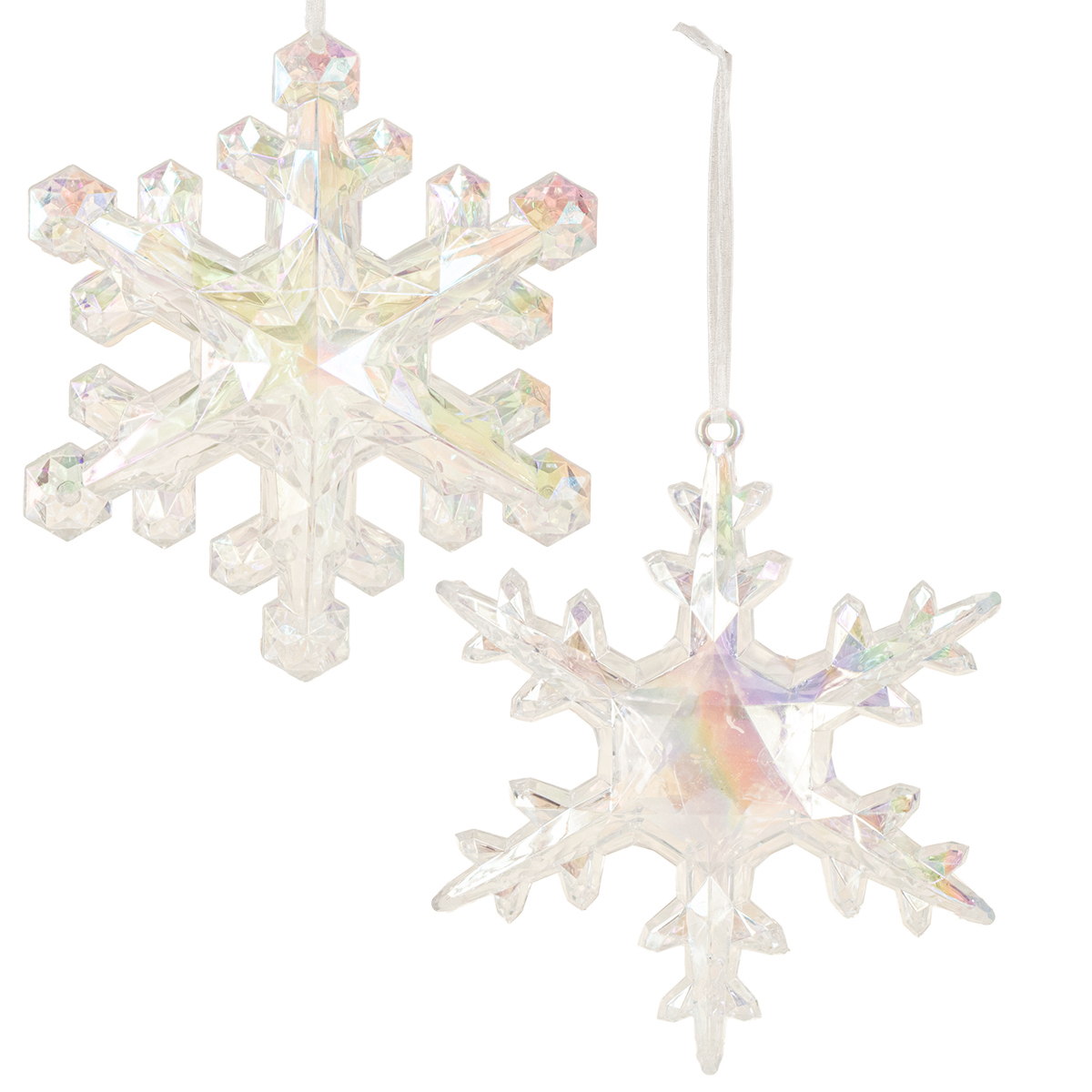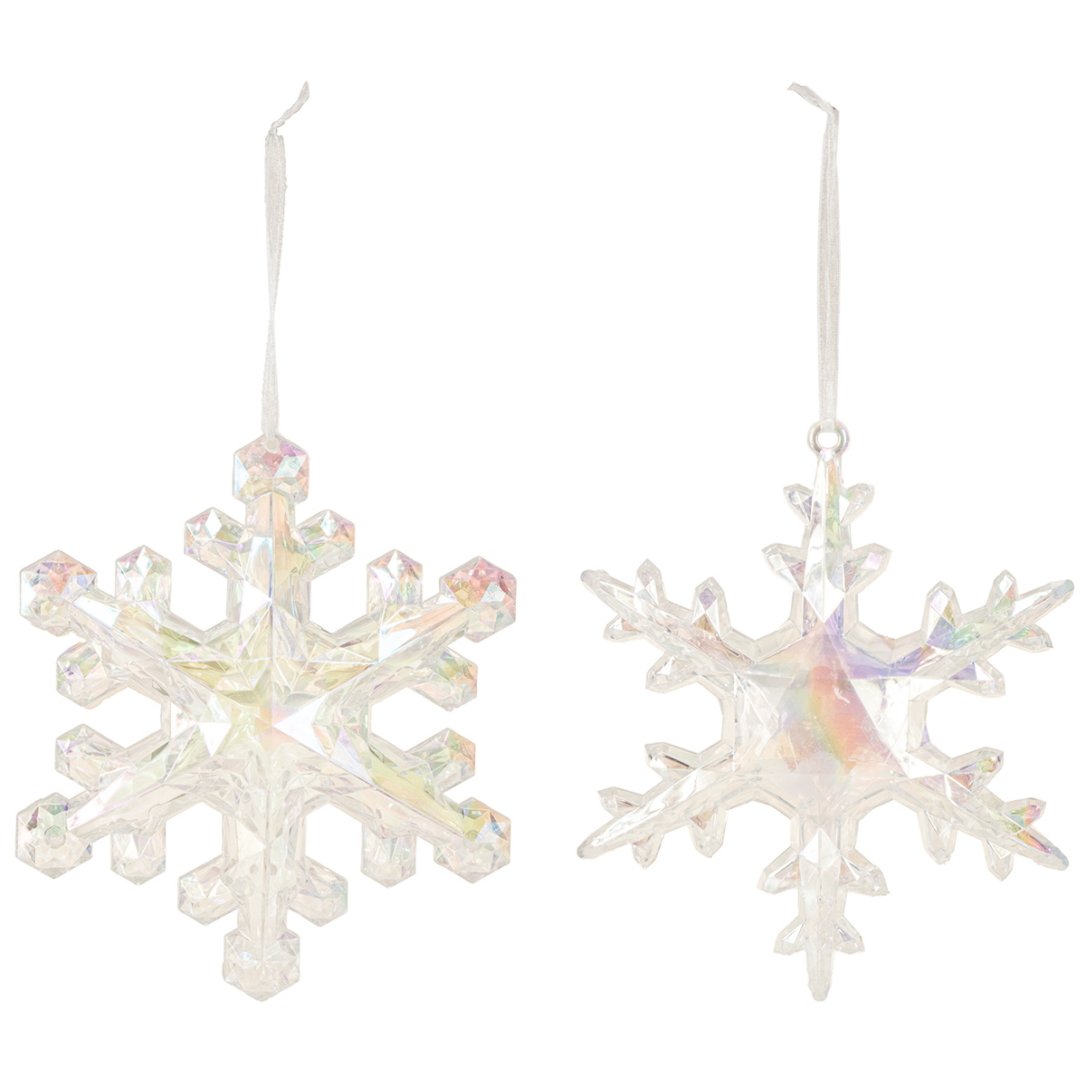 Nom du produit : Flocons de neige décoratifs, décoration hivernale, irisés, Ø 14–15 cm, lot de 2