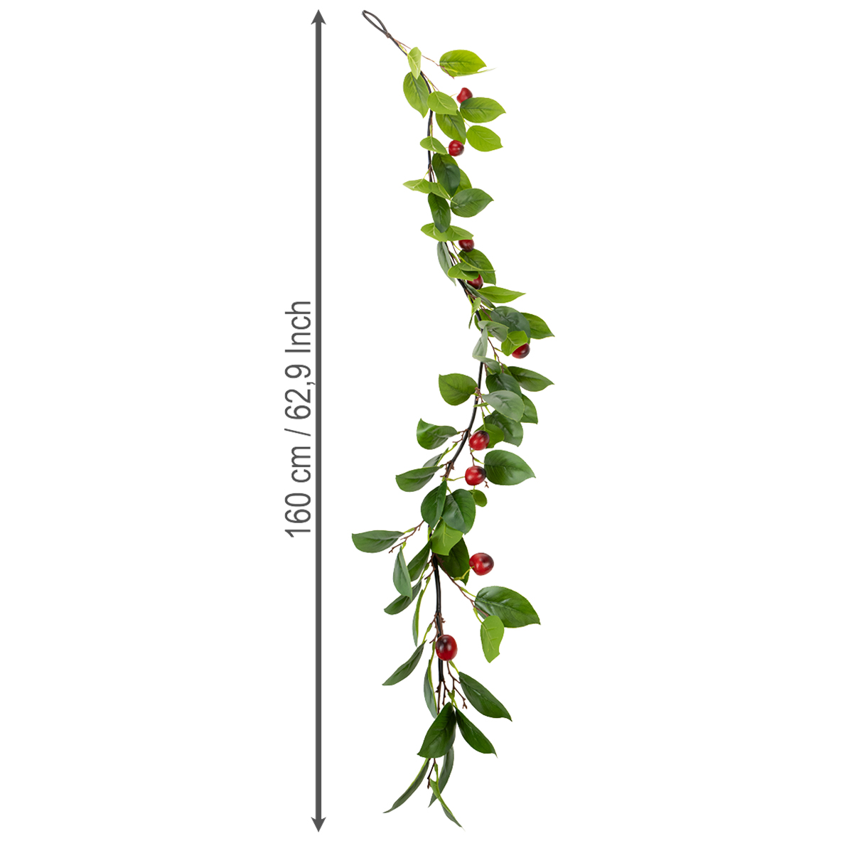 Mit einer Länge von 160 Zentimetern und einem detailgetreuen Design bietet die künstliche Kirschen Girlande zahlreiche Möglichkeiten, um Ihre Dekoration individuell und stilvoll zu gestalten. Die frischen Grün- und Rottöne harmonieren perfekt mit verschiedenen Einrichtungsstilen. Ob als festliches Highlight auf einem Tisch, als Türgirlande für einen freundlichen Empfang oder als kreative Schaufensterdekoration – diese florale Girlande verzaubert jeden Raum. Sie eignet sich besonders gut für Frühlings- und Sommerdeko, zaubert aber auch das ganze Jahr über ein natürliches Ambiente.