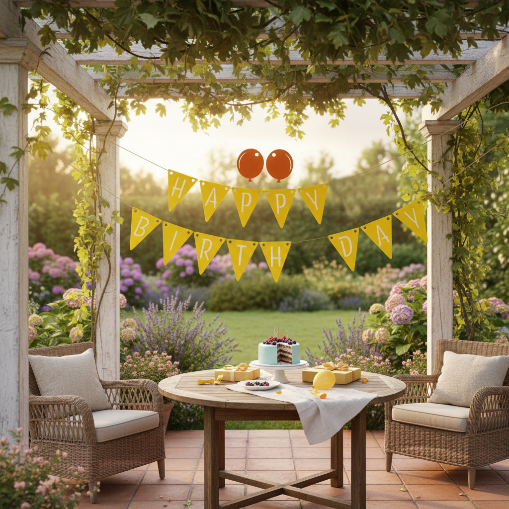 Accrochez la banderole en un seul fil comme lettrage ou divisez les mots sur deux niveaux pour votre décoration murale d'anniversaire.