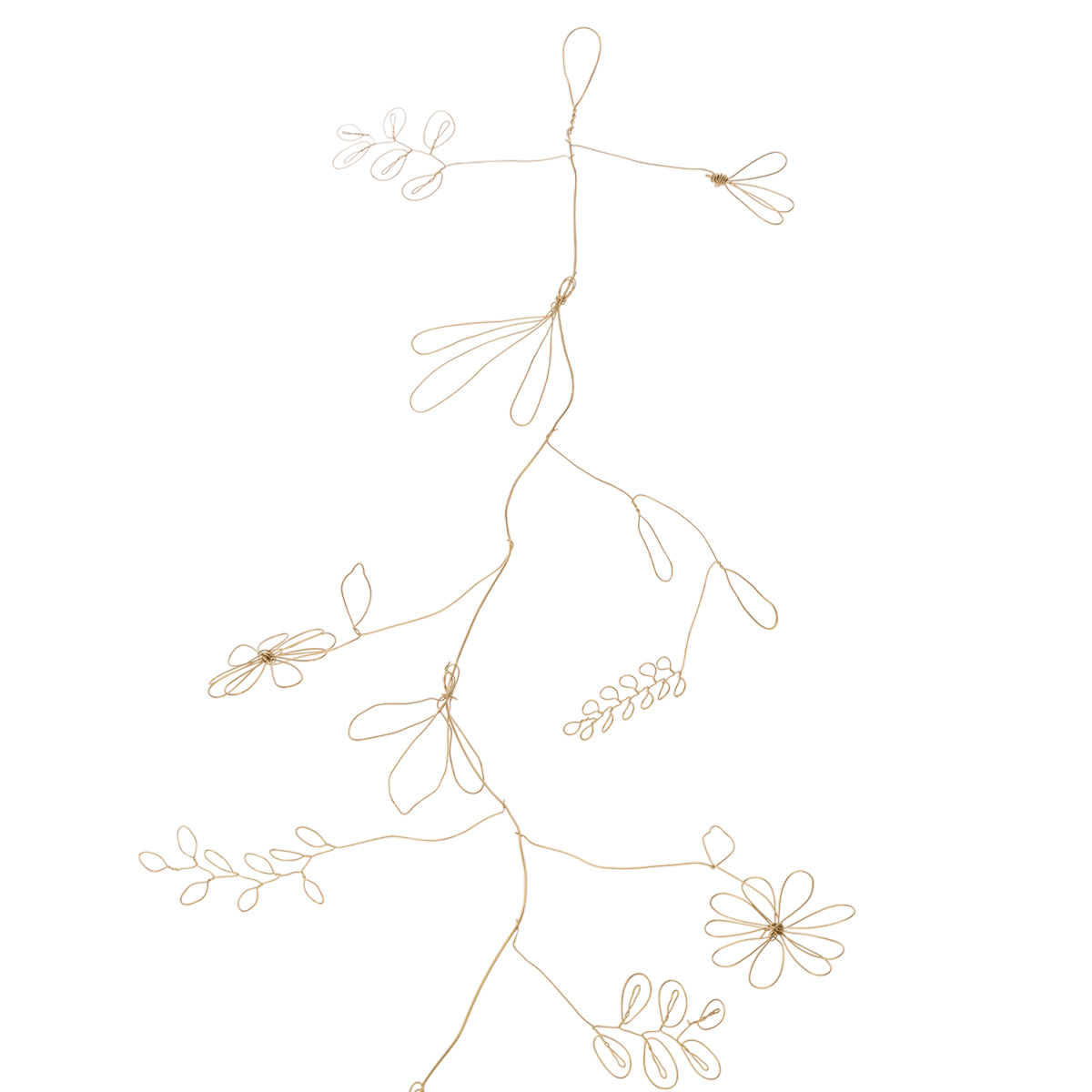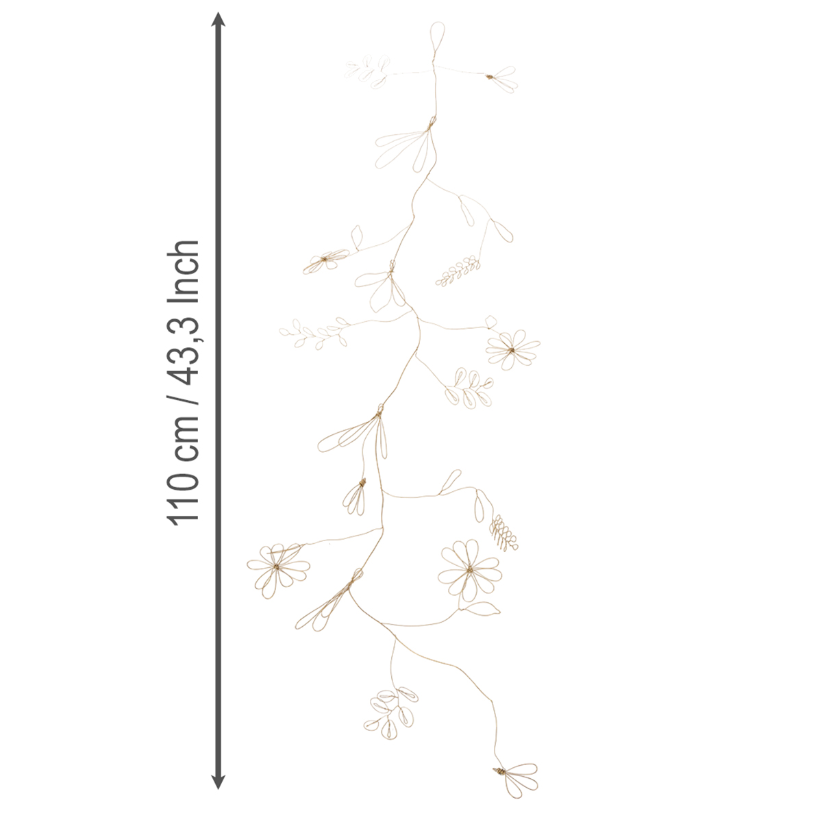Auf diesem Dekohänger aus Metall mit Blumen ist der Sommer ausgebrochen! Entlang der Girlande in Gold besuchen hier und da Insekten die schönen Blumen und Ranken, die fantasievoll durch goldfarbenen Draht dargestellt werden.