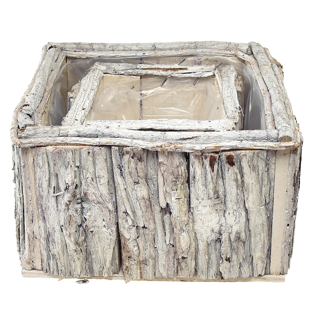 Jardinière en bois avec écorce blanc naturel 17/24cm lot de 2 pièces