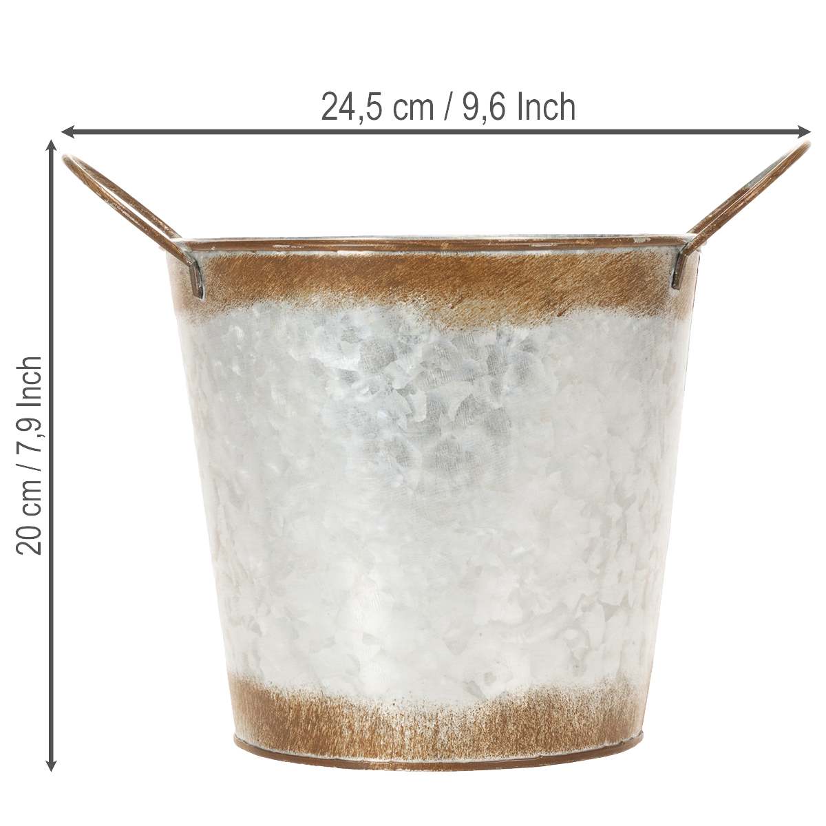 Jardinière en métal, coupe à fleurs, pot de fleurs avec poignées argentées, finition acier patiné, Ø18cm H20cm