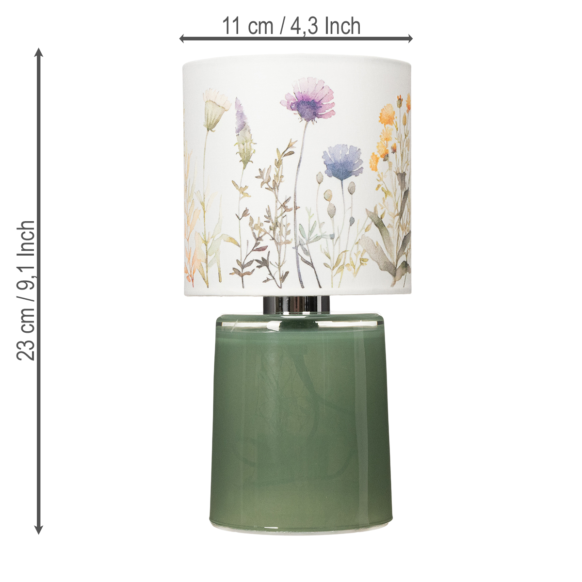 Suchen Sie nach einer Lampe, die nicht nur für angenehmes Licht sorgt, sondern auch Ihrem Raum einen Hauch von Eleganz verleiht? Diese Tischlampe mit Blumenmuster ist ein echtes Highlight für jeden Wohnbereich! Der charmante Blütenschirm aus Glas in Kombination mit dem Keramikfuß in einem edlen Grün macht sie zu einem dekorativen Allrounder – egal, ob Sie es modern, romantisch oder skandinavisch mögen. Mit ihrer kompakten Größe von 23 cm Höhe und einem Durchmesser von 11 cm passt sie perfekt auf Beistelltische, Nachttische oder in Regale. Gleichzeitig sorgt die LED-Technologie für ein angenehmes, energieeffizientes Licht, das Zuhause sofort gemütlicher macht.