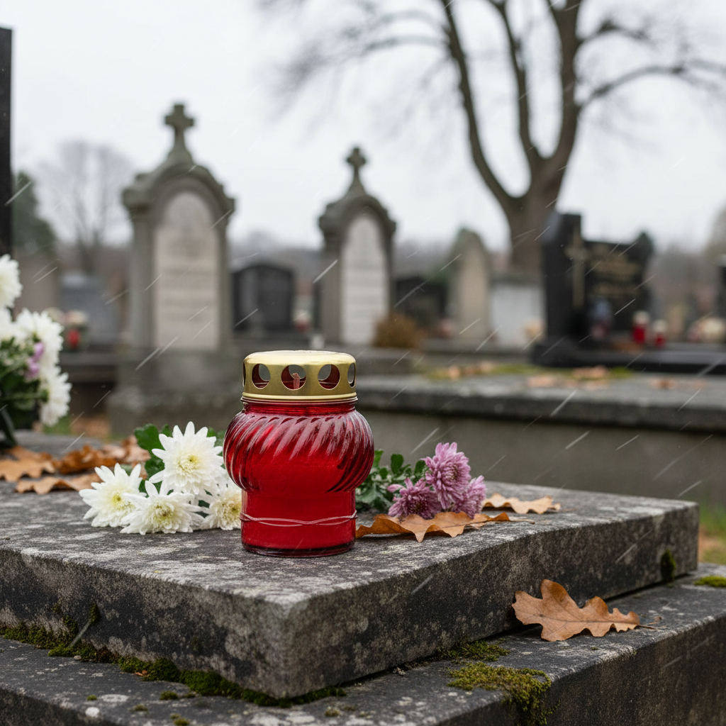 Vanwege het stabiele karakter kunt u de glazen kaarsen zowel op een stenen plaat als op de grond plaatsen. Je kunt het ook gebruiken als aanvulling op een grafbedekking zoals een rouwkrans en een herdenkingsarrangement of om een graflantaarn te vullen. De sacrale rouwkaarsen zijn ook geschikt als onderdeel van een rouwdecoratie in de kapel en geven veel comfort door de zachte vlammen, waardoor ze goed opgaan in de achtergrond. Je kunt ook het deksel verwijderen, zodat je de buitenkaars binnen kunt gebruiken en meer helderheid krijgt.