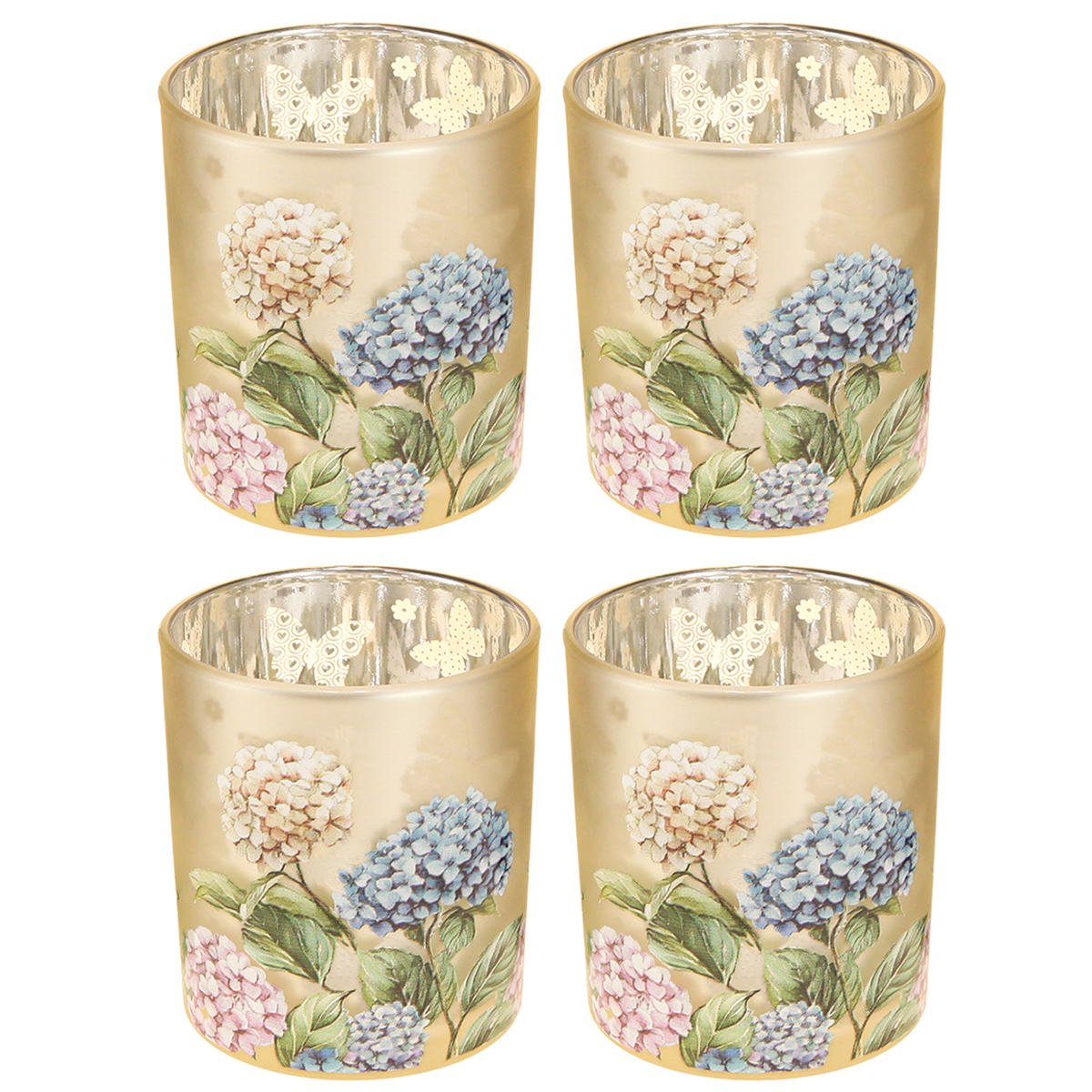 Decoratieve glazen lantaarn met bloemenmotief voor stijlvolle woonaccessoires, 8 cm, 4 stuks.