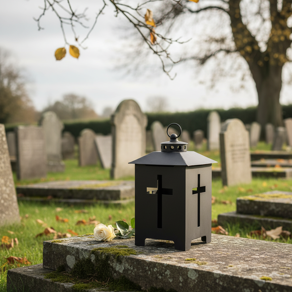 - Lampe funéraire métallique avec croix pour un symbolisme significatif