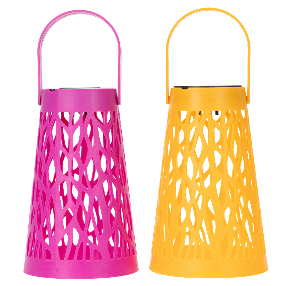 - Set van twee lantaarns in felroze en geel.