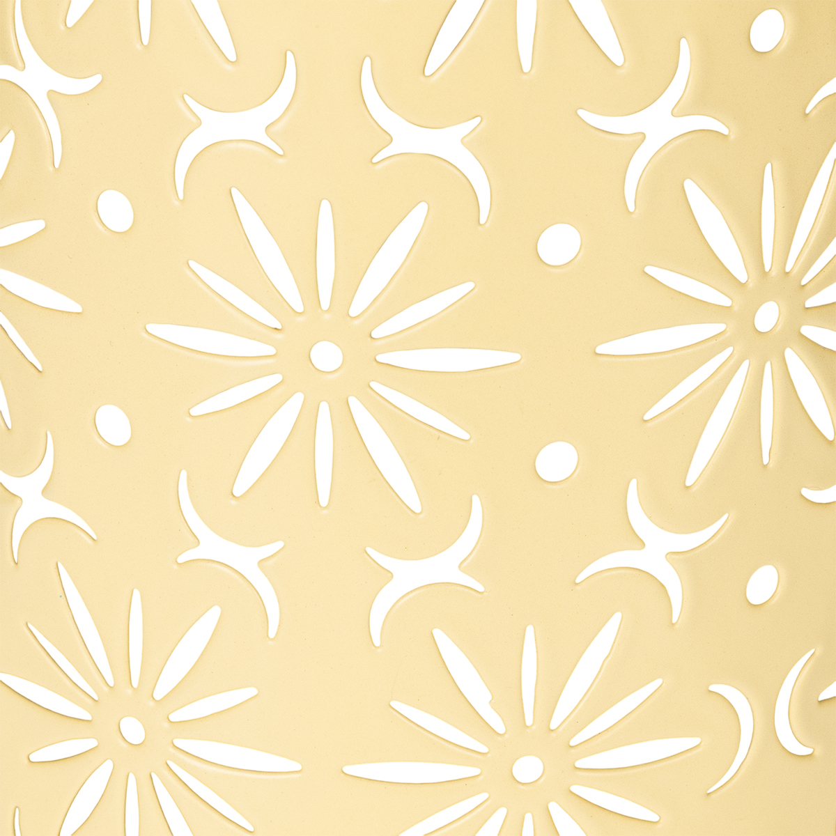 - Material: Robustes Metall in Gelb mit floralem Muster