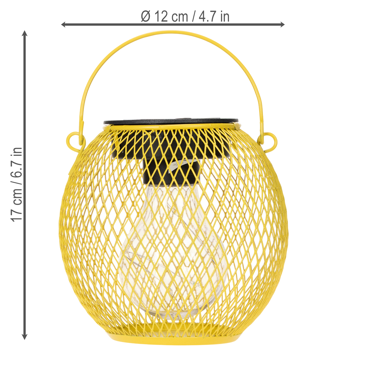 Diese Solar-Laterne für Garten und Terrasse begeistert mit ihrer gelungenen Kombination aus Stil und Funktion. Mit ihrem modernen Design im Maschenmuster verleiht die Laterne jedem Außenbereich einen individuellen Look. Das hochwertige Metall in sonnigem Gelb wirkt zugleich freundlich und trendbewusst. Besonders schön lässt sich die Laterne in einem mediterranen Ambiente oder als Farbtupfer in einem skandinavischen Garten integrieren. Der integrierte Henkel macht den Transport sowie das flexible Umstellen zum Kinderspiel.