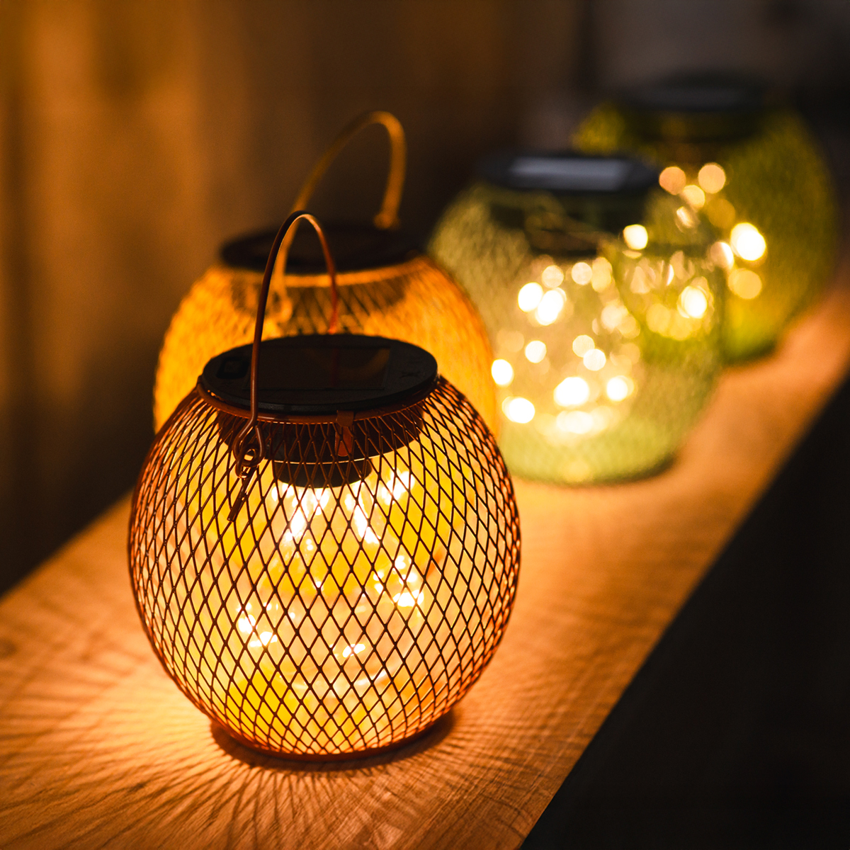 - Disposez-les sur des tables ou suspendez-les aux arbres pour créer un jeu de lumière atmosphérique.