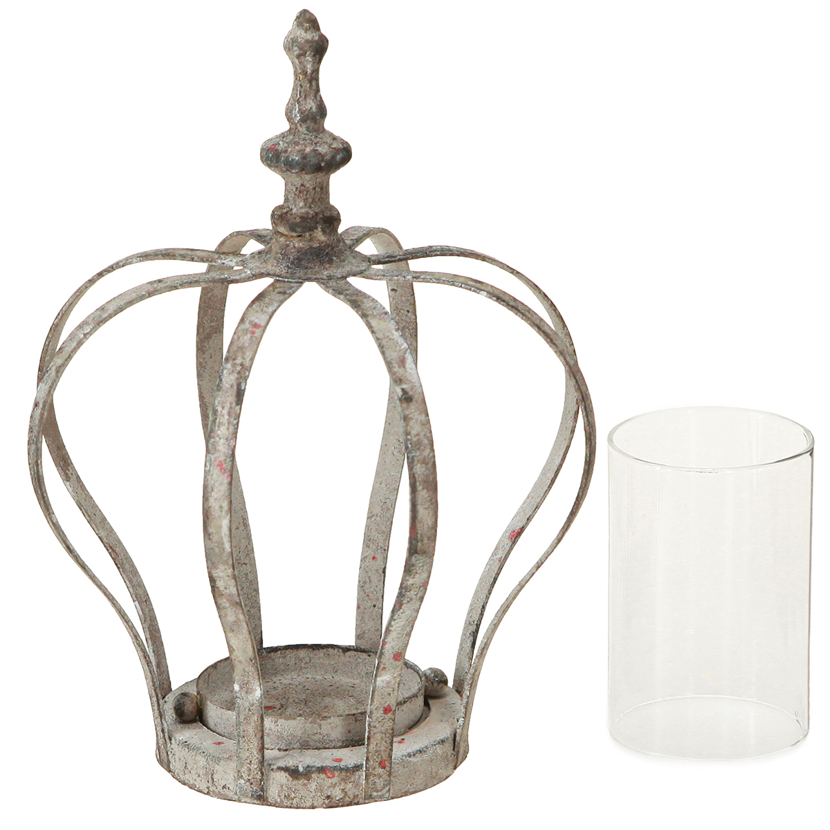 Vintage Windlicht Krone Metall mit Glas Grau Ø14cm H18,5cm