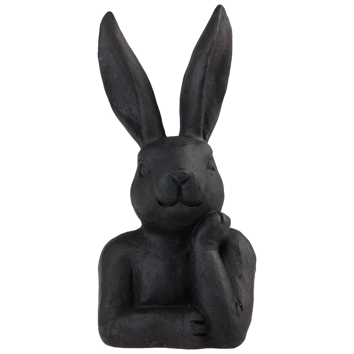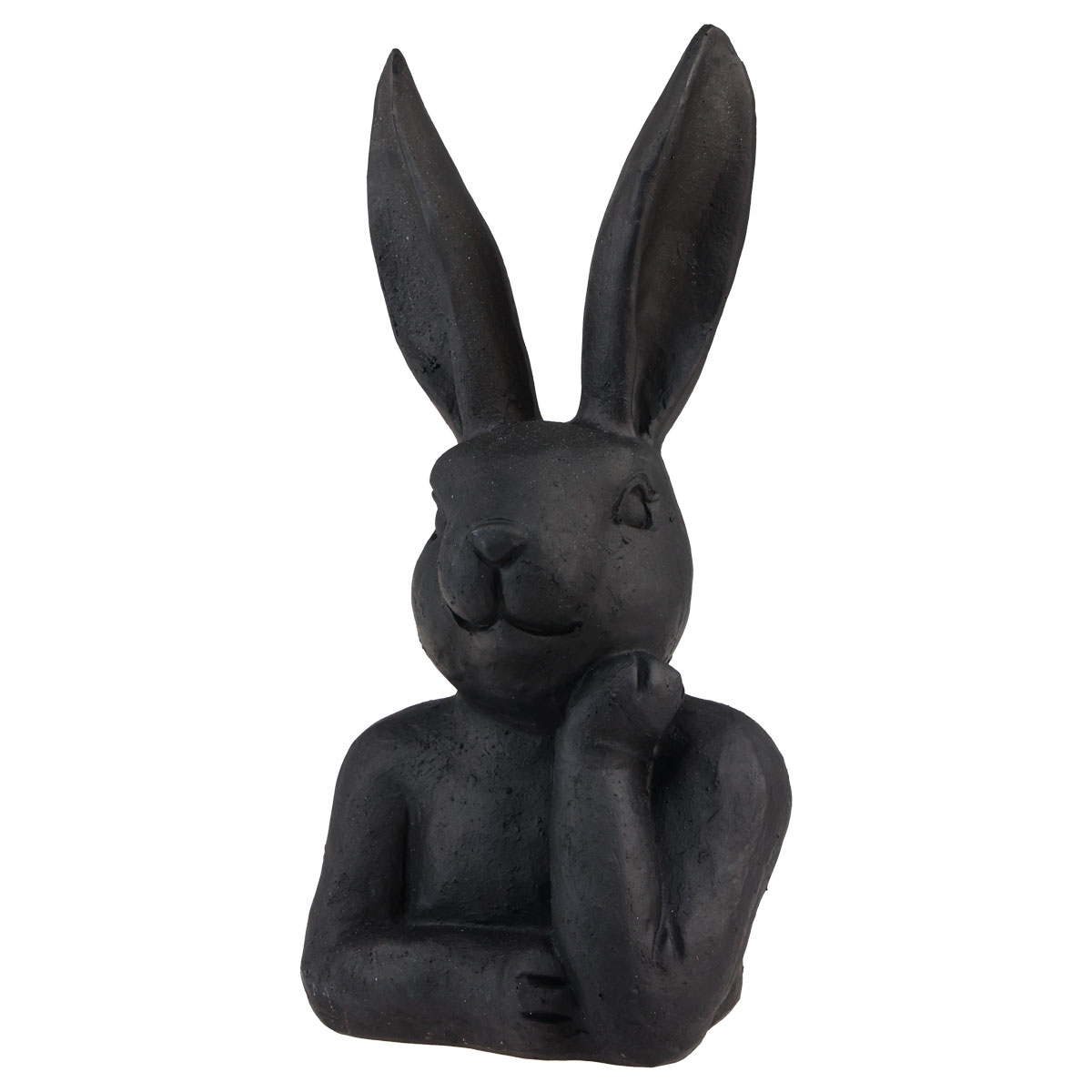Le lapin de Pâques sourit malgré sa pose réfléchie et est peint en noir mat. Avec ses longues oreilles et son visage détaillé, la figurine décorative est très vivante. La couleur noire donne cependant de l’élégance au lapin.