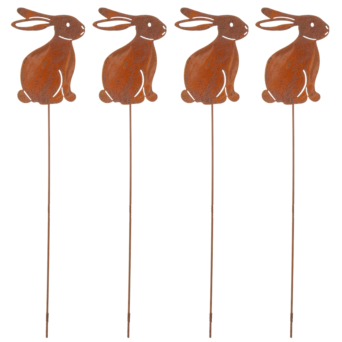 Lapin décoratif à piquer pour Pâques, finition rouillée, style champêtre, 60 cm, lot de 4