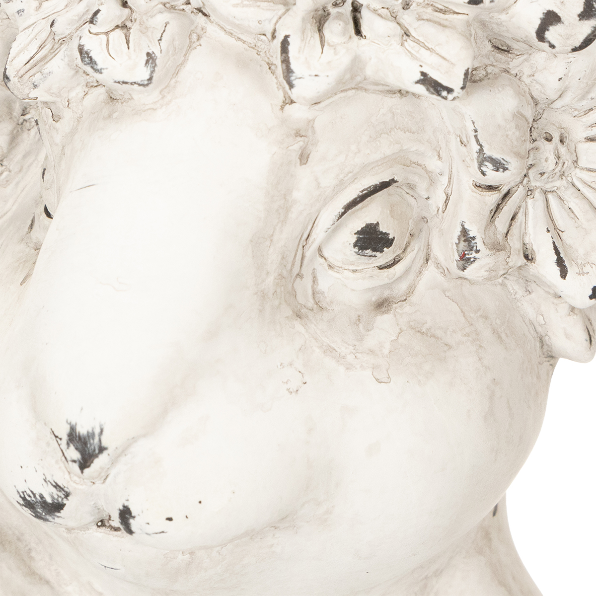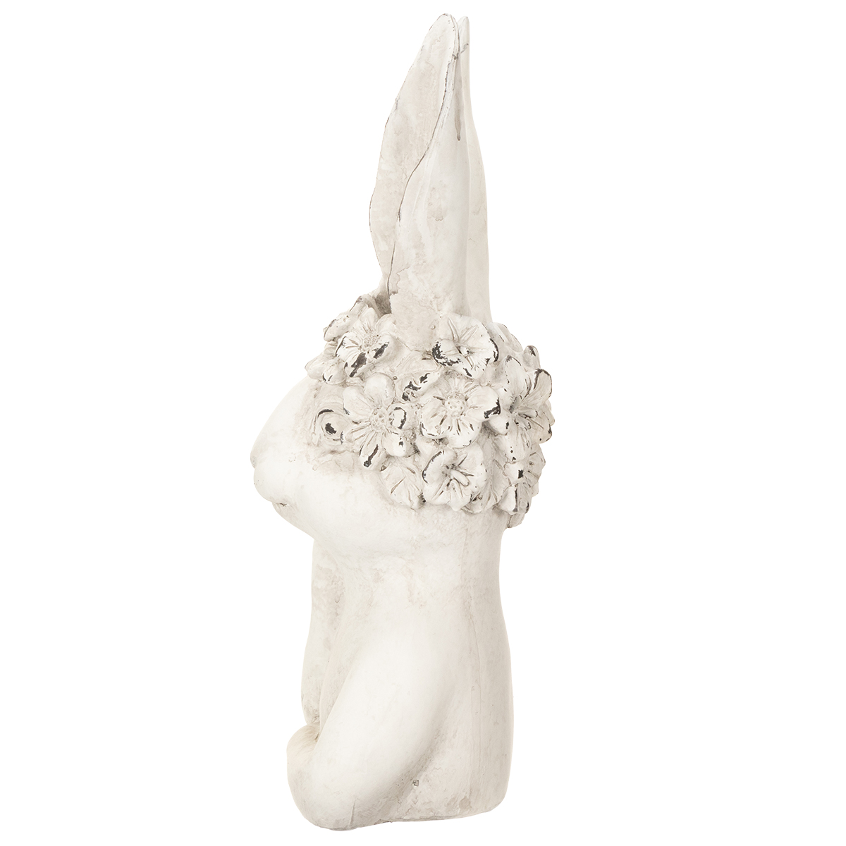 Notre lapin décoratif séduit par l'harmonieuse subtilité de ses détails. Sa pose expressive, la patte posée sur le lapin et la couronne de fleurs délicate qui orne sa tête, lui confèrent une personnalité unique. Sa douce couleur grise le rend polyvalent, tandis que sa céramique de haute qualité garantit stabilité et durabilité. Il convient aussi bien à l'intérieur qu'aux espaces extérieurs couverts.