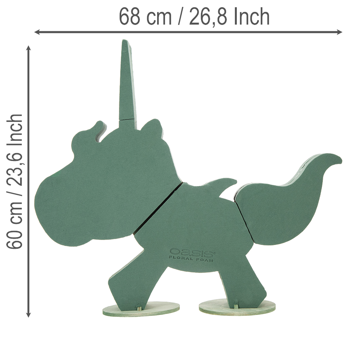 Obtenez la licorne à la mode. Créez une atmosphère merveilleusement originale lors de votre prochaine fête ou événement! La licorne de la série OASIS® BIOLINE® est principalement constituée de mousse verte humide. Il repose sur deux bases stables en bois vert. La mousse florale très respectueuse de l'environnement est équipée de lignes coupées. Ceux-ci minimisent le dessèchement.