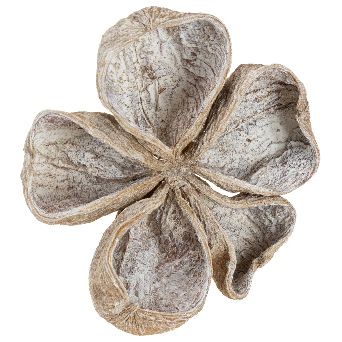 Wenn Sie Ihren Trauerkranz zu Totensonntag oder zu Allerseelen entwerfen, dann fügen Sie diesen edlen, in Weiß gewaschenen Landlotus hinzu! Sie erhalten mit diesem hochwertigen Artikel aus der Gedenkfloristik eine anmutige Trockenblume, die ihre löffelartigen, geweißten Blüten offen zur Schau stellt. So können Sie die Blüten sehr schön zum Dekorieren von einem Gedenkgesteck verwenden und damit eine anmutige Trauerdekoration erstellen, die Sie beispielsweise als Grabauflage nutzen können.Aber auch als Tischdekoration für die Trauerfeier punktet dieser Deko-Lotus, der auch Sterculia urens genannt wird. So können Sie entweder die ganze Blüte verwenden oder einzelne Blätter leicht abtrennen, um sie ebenfalls in einem Gesteck oder in einer Raumdekoration unterzubringen. Sie haben auch die Möglichkeit, die Trockenpflanze als Weihnachtsdekoration für einen Adventskranz oder eine Fensterdekoration zu nutzen.