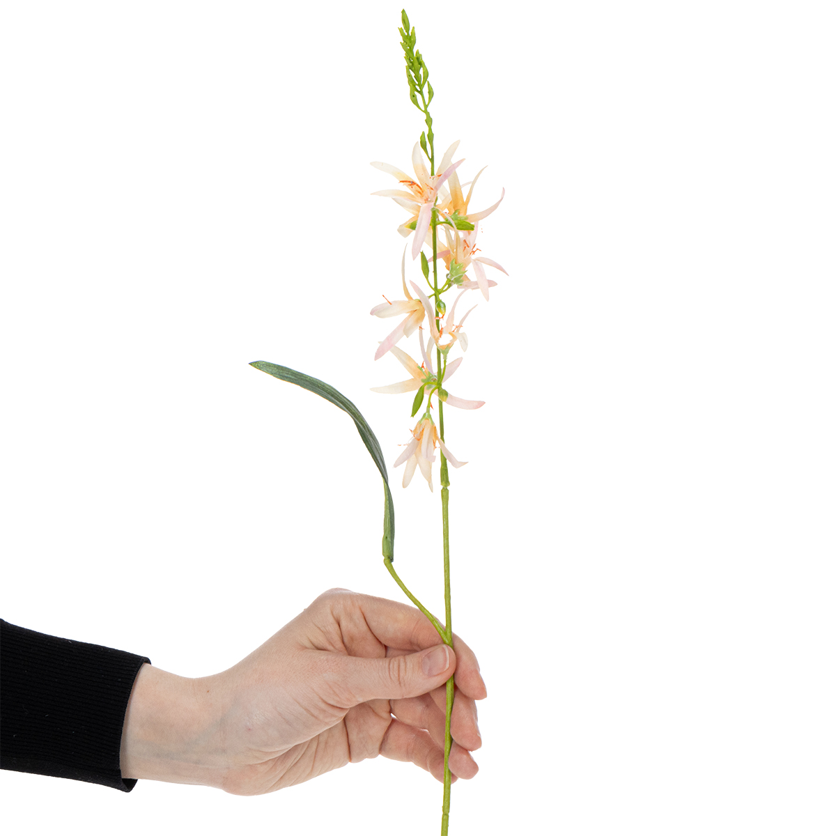 Ce lys artificiel à longue tige séduit par la qualité de ses matériaux : polyester et plastique. Cette combinaison lui confère un aspect réaliste et une grande durabilité. La finesse des détails des pétales et la coloration fidèle lui donnent un charme irrésistible, presque trompe-l'œil. Il révèle toute sa magie, notamment lors des mariages, où l'élégance et l'intemporalité sont recherchées. En centre de table, dans une composition florale sur pied ou simplement dans un vase moderne sur la table de réception, ce lys attire tous les regards.