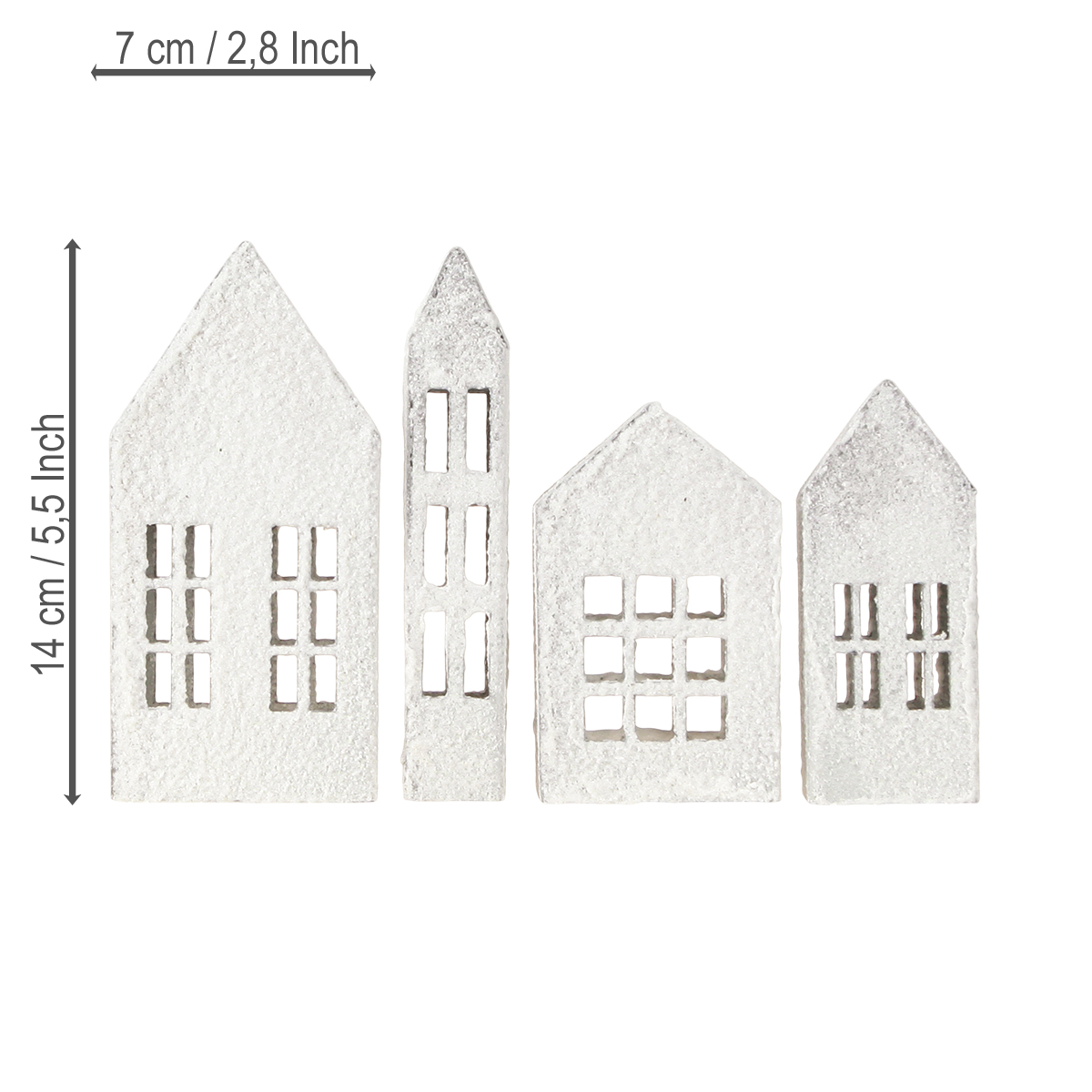 Miniatuurhuisjes voor interieurdecoratie en sfeer, zeer decoratief, tijdloos design voor in huis, 14 cm, 4 stuks