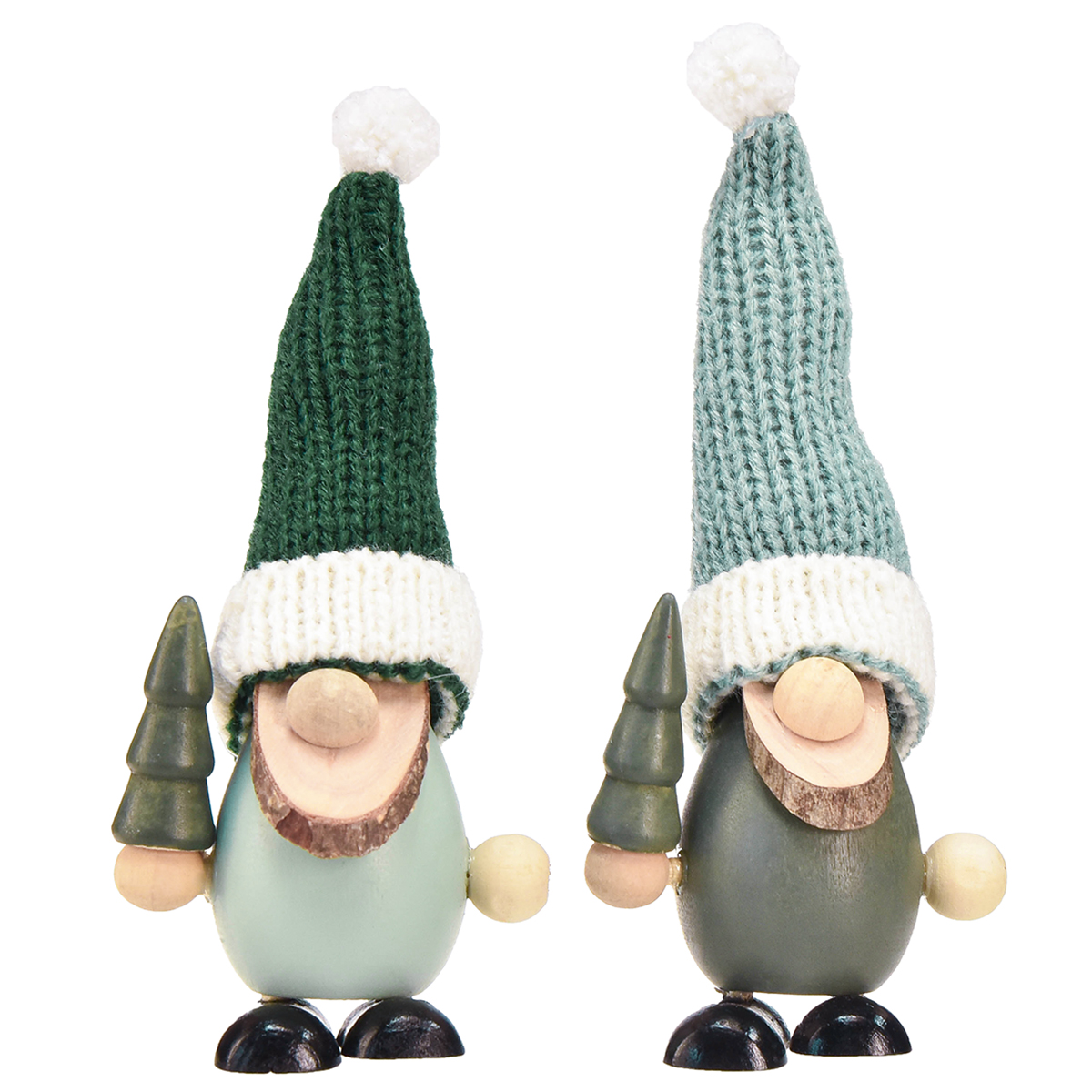 - Lutins de Noël décoratifs en bois menthe verte - 2 assortis