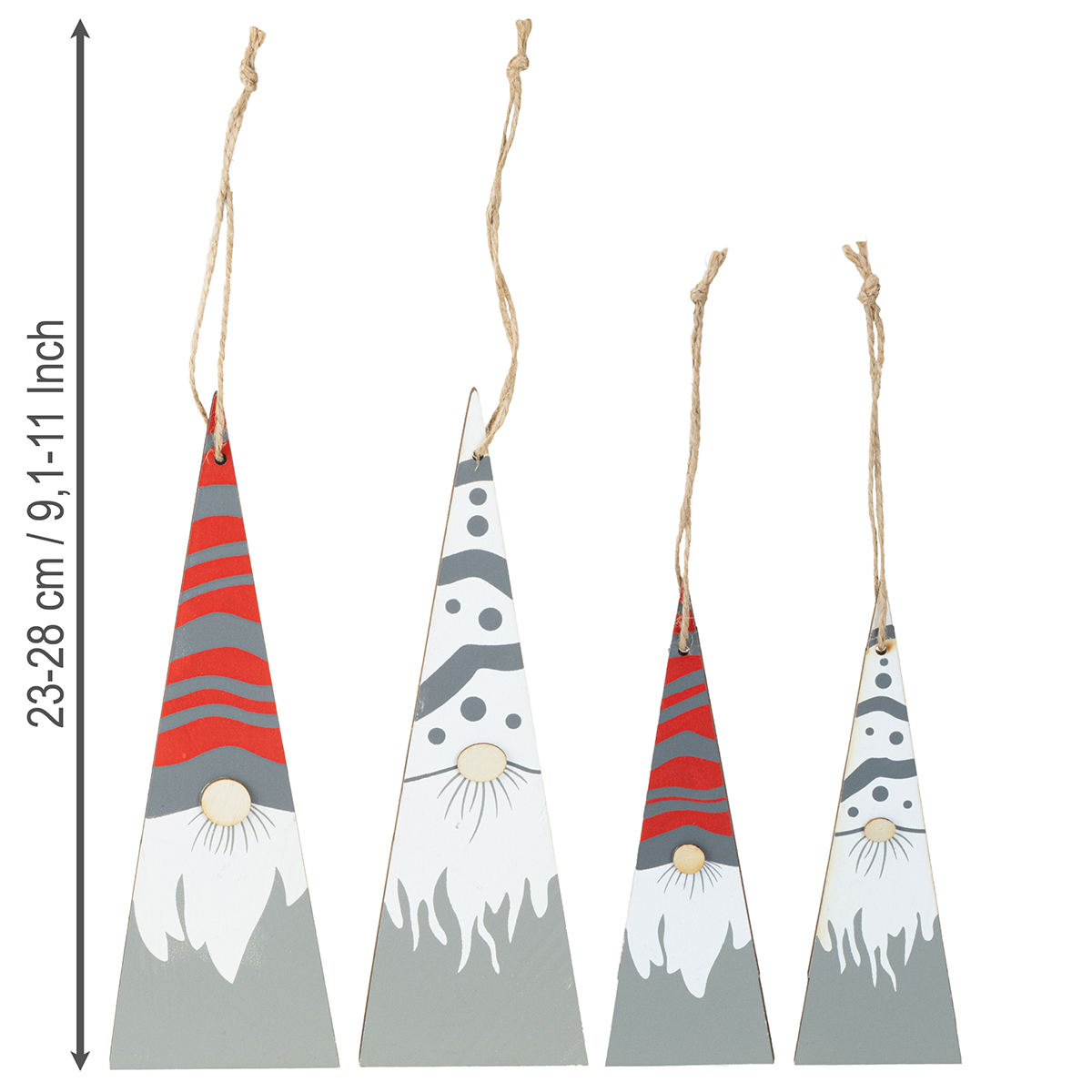 Nains de Noël en bois à suspendre gris rouge 15/19,5 cm 8 pièces