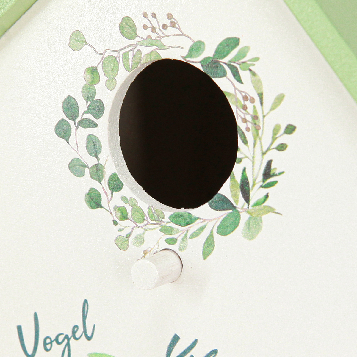Dieses Vogelhaus ist nicht einfach ein Dekoelement, sondern ein kleiner Schatz für alle, die Wert auf stimmungsvolle Details legen. Die frische, grüne Farbe des Daches harmoniert perfekt mit dem sanften Weiß der Holzfassade, die mit zarten Blumenmotiven verziert ist. Es erinnert an gemütliche Landhäuser und fügt sich ideal in Vintage- oder Landhausstil-Dekorationen ein. Mit einer Höhe von 21 Zentimetern macht es auf jedem Fensterbrett oder an der Wand hängend eine gute Figur und zieht die Blicke magisch an. Das Besondere: Es dient ausschließlich dekorativen Zwecken und ist somit ideal für Innenbereiche geeignet. Die liebevolle Handarbeit ist deutlich erkennbar, was das Vogelhaus zu einem Unikat macht. Besonders im Frühling oder Sommer ist es ein Traum: Stellen Sie es vor eine Vase mit frischen Blumen oder ergänzen Sie Ihre frühlingshafte Tischdekoration mit diesem charmanten Highlight. Und mal ehrlich, wer mag nicht ein wenig mehr Blumen und Natürlichkeit in seinen vier Wänden? Das Umdekorieren gestaltet sich übrigens superleicht: Einfach die Rückseite öffnen, kleine Accessoires oder florale Arrangements hineinstellen und schon erstrahlt es in neuem Glanz. Auch als besonderes Geschenk ist das Vogelhaus eine großartige Idee, denn es ist individuell, praktisch und zeitlos schön.