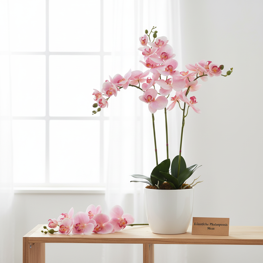 En raison de la splendeur de ses fleurs, cette orchidée du genre Phalaenopsis est une fleur artificielle de premier ordre. Créez des décorations durables même dans les pièces sans lumière avec la grande fleur artificielle !