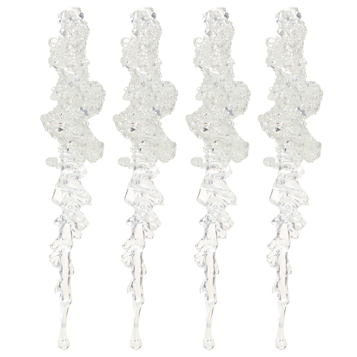 Ornements de sapin de Noël en forme de glaçons avec paillettes, décoration hivernale, 17,5 cm, lot de 4