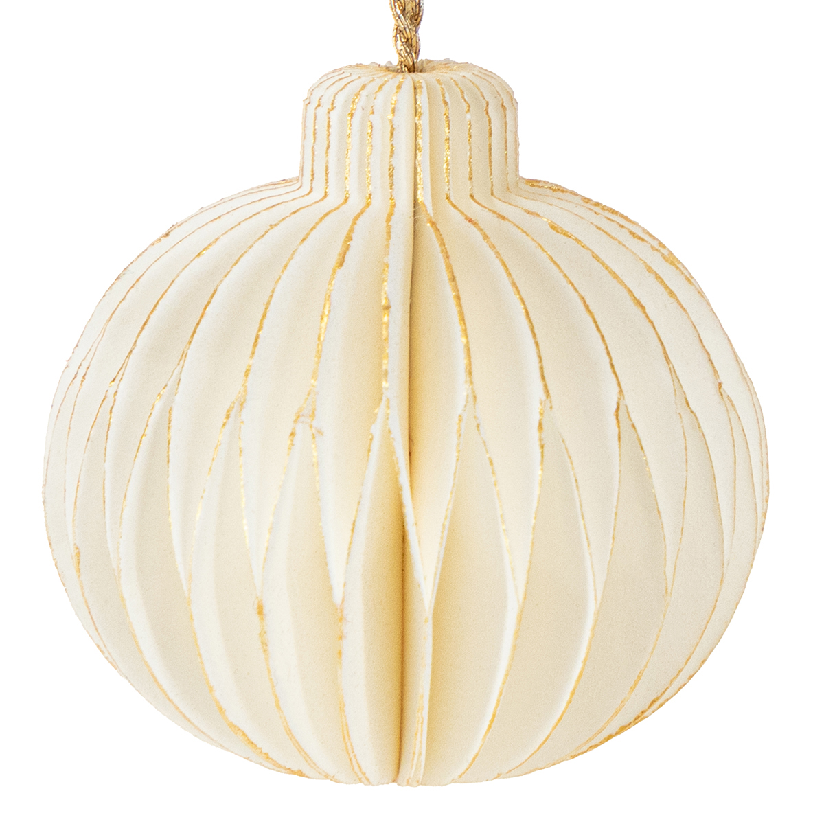 Le blanc éclatant, rehaussé de fines bordures dorées mates, crée une harmonie intemporelle. Qu'elle orne un grand sapin de Noël ou qu'elle serve de charmante décoration sur un petit sapin de table, cette boule à suspendre en papier alvéolé ne manquera pas d'attirer les regards et d'apporter une touche d'élégance.