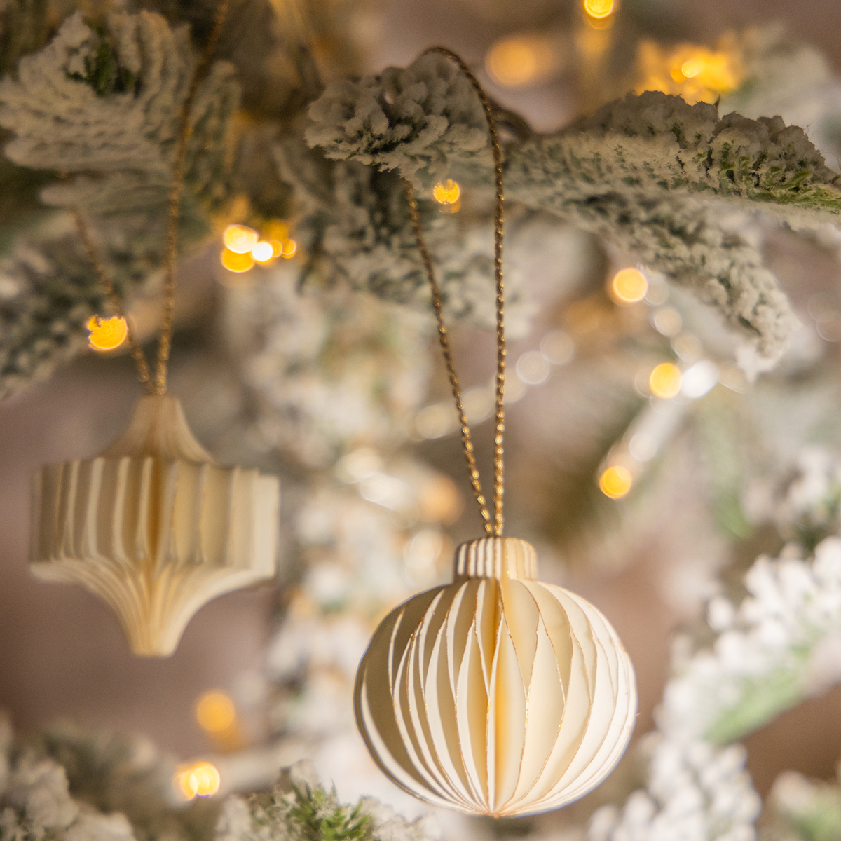 Décorations de Noël en papier blanc et or – style et élégance scandinaves