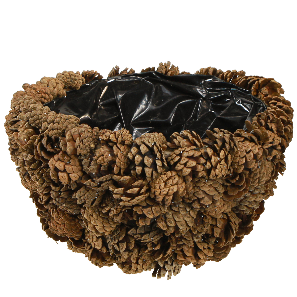 Dekorativer Zapfenkorb aus künstlichen Kiefernzapfen mit Kunststoffeinsatz