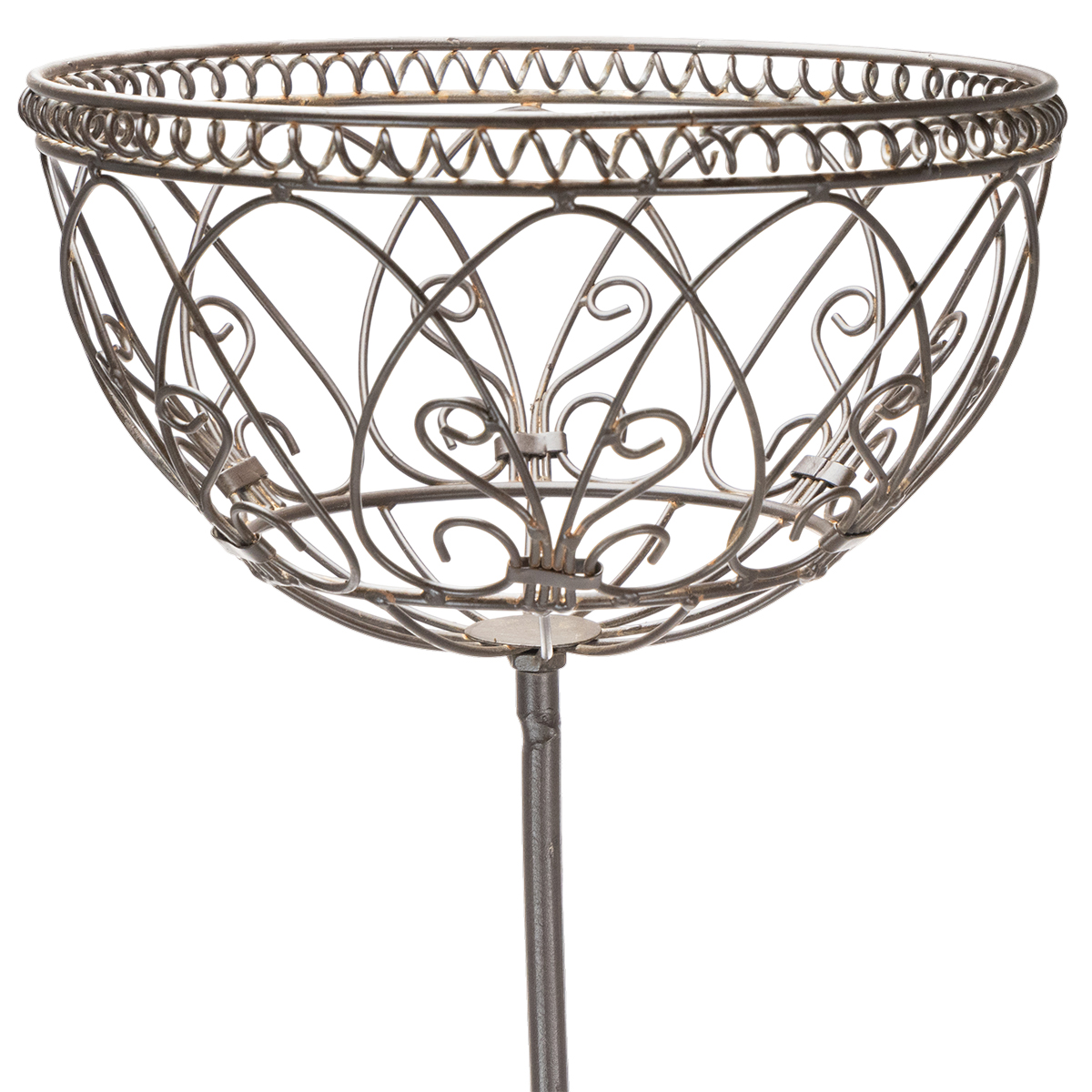 Deze metalen mand op een paal is veel meer dan zomaar een tuindecoratie – het is een uniek decoratief object met een verhaal. Het vakmanschap, met vloeiende lijnen en delicate details, weerspiegelt de elegantie van een vintage stijl. Gebruik hem als decoratieve mand voor verse bloemen, kruiden of seizoensdecoraties zoals paasversieringen. Of plaats hem als stijlvolle metalen tuindecoratie, een opvallend middelpunt naast uw tuinmeubilair. De bruine kleur harmonieert prachtig met hout, rotan of andere natuurlijke materialen en is gemakkelijk te combineren met vazen, kunstbloemen of kransen.