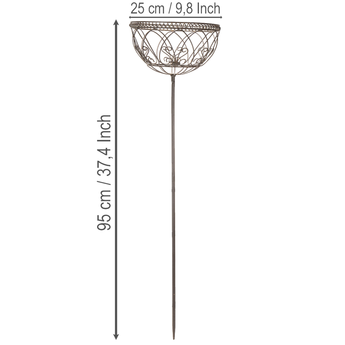 Voeg een vleugje romantiek toe aan uw tuin, terras of balkon met deze decoratieve metalen mand in vintage-stijl. Deze hoogwaardige tuinmand is gemaakt van stevig, bruin geverfd metaal en is perfect voor beschutte buitenruimtes. Met een hoogte van 95 centimeter en een diameter van 25 centimeter straalt hij elegantie uit en is hij een echte blikvanger. Of u hem nu gebruikt als decoratieve schaal in de tuin, als stijlvolle klimrek in vintage-stijl of als plantenpot op uw terras, deze metalen mand creëert een charmante sfeer en maakt indruk met zijn veelzijdigheid.