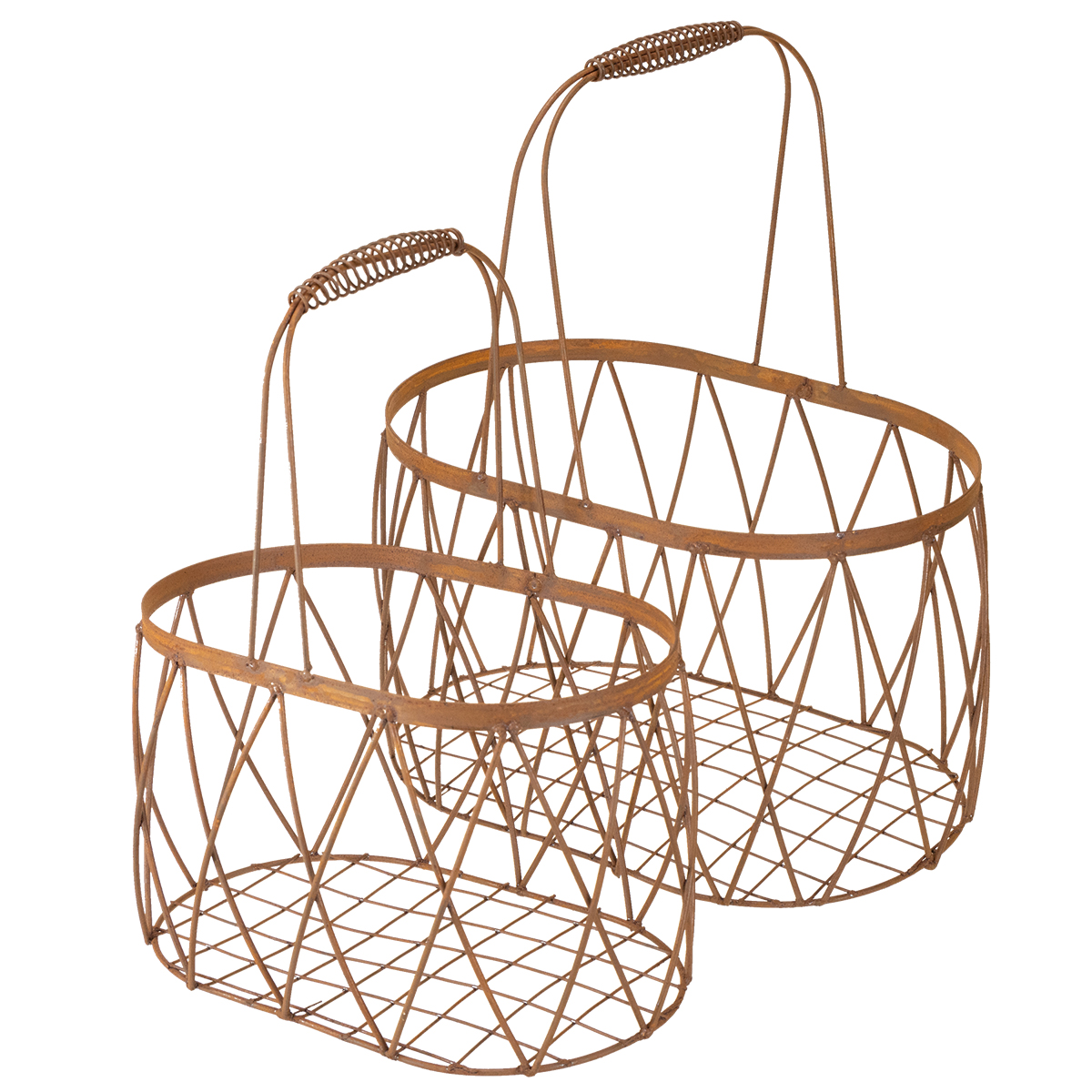 Nom du produit : Panier ovale en fil de fer avec anse, décoration de jardin, finition rouille, 30 x 25 cm, lot de 2