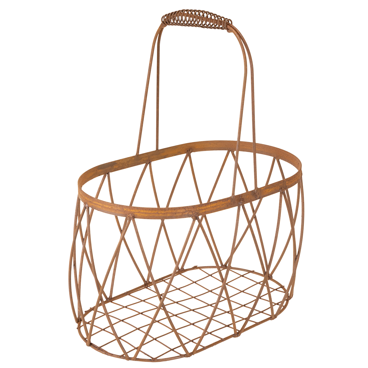 Panier ovale en fil de fer avec anse, décoration de jardin, finition rouille, 30 x 25 cm, lot de 2