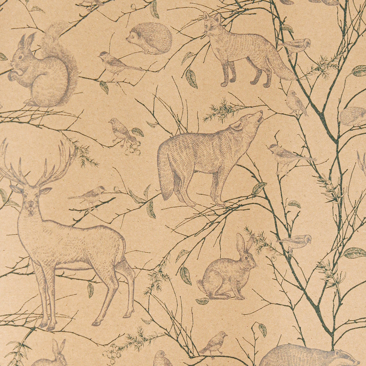 Papier cadeau animaux forêt en marron bleu 70cm x 200cm