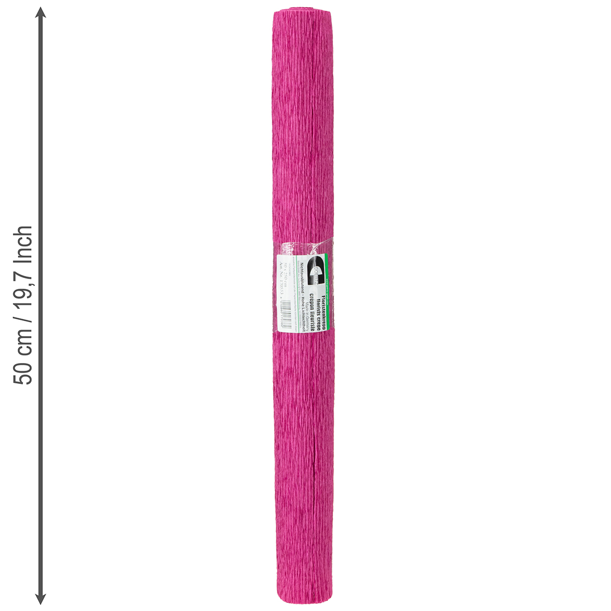Schmücken Sie Ihre Dekoration mit diesem Floristen-Krepppapier in Magenta und sie wird garantiert nicht übersehen! Die brillante Farbe wirkt edel und modern zugleich, wodurch Sie aus dem festen, nicht ausblutenden Papier, das zudem durch seine hohe Lichtechtheit überzeugt, zum Beispiel kleine Schleifen binden oder Papierblumen kreieren können, die dann in einer Schaufensterdekoration für einen zusätzlichen Blickfang sorgen. Für einen farblichen „Knalleffekt“ sorgt das helle Krepppapier auch in einem Maiherz und in einem Muttertagsgesteck.Nutzen Sie dafür eine Kreppwickelmaschine, damit die Herstellung der Papierröschen schneller und effizienter vonstattengeht. Außerdem können Sie mit dem Dekopapier auch aufsehenerregende Tischdekorationen für feierliche Veranstaltungen erstellen und darauf dann große Papierblumen, Aufsteller und auch schicke Girlanden deponieren. Mit Schablonen können Sie auch allerlei Formen ausschneiden und diese auf Pappe kleben und so eine Wanddekoration kreieren, die, mit einer Lichterkette kombiniert, ebenfalls für eine Festtagsstimmung sorgen wird! Kurz: Gestalten, dekorieren und basteln Sie mit dem Papier einfach drauflos!